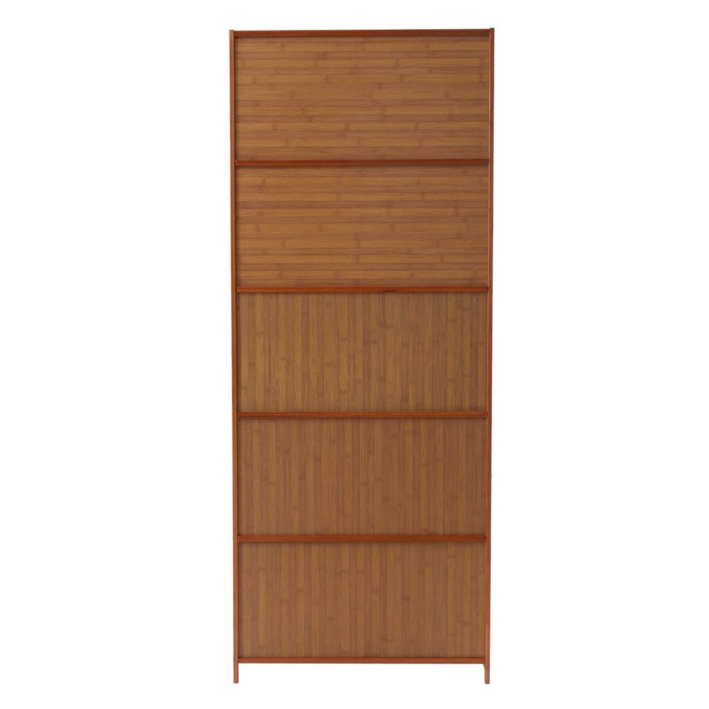10 Tiers Bamboo Shoe Rack Cabinet, Wood Shelf Stand Storage Book Shelf Organizer 10-Tier Bamboo Shoe Rack Cabinet Wooden Shelf Stand Storage Book Shelf Organizer How to assmeble? Remember to override the side of the door suction with the iron plate 1. Remove the door suction laminate and the small screws for the door suction 2. Fix the door suction laminate to the side brackets with the large screws 3. Take out the back plate and insert it along the groove of the bracket. Remember to insert the metal strip into the hole, not into the groove Do not screw the front screws yet 4. Remove the door suction laminate and the back panel in turn 5. Take out the top laminate and the inner door laminate and install them with large screws 6. Remove the metal strip and insert it into the side brackets in turn. Door puller, door spacer with medium screws The metal strips are inserted into the recesses of the brackets As the screws are not screwed in step 5, the side brackets can be gently broken open Insert the metal strips into both ends of the door 7. Remove the door panel, door gasket, door pull ring and metal tabs and install them as shown in the picture 8. Break off the side brackets to the right, then snap the door panel into the brackets 9. Install the remaining door panels in sequence and tighten the screws. 1.Description Are you still troubled by the messy entryway? Are you still looking for a suitable entryway shoe rack? This shoe cabinet can not only give you a neat door but also meet your shoes storage needs. Its fully enclosed design protects against dust and moisture, while you can open the door to ventilate and disperse the smell, giving your shoes a dry, clean storage environment. It will be the ideal choice for you! Specification Material: Nan Bamboo and Laminate Finish: Varnished Color: Brown Doors Included: Yes Shoes Capacity: 30 Pairs Assembly Required: Yes Mount Type: Floor Mount Shape: Rectanglar Packing Size: 181*36.2*16.5cm/71.25*14.25*6.49in Each Tier Height: 15cm/5.91in Product Size: 70*32*172cm/27.58*12.60*67.72in Gross Weight: 18kg/39.68lbs Net Weight: 17kg/37.47lbs Bearing Weight of Each Tier: 20kg/22lbs 2.Package Included 1 x Shoe Cabinet 1 x Chinese User Manual All Accessories for Installation 3.Key Features High Good Material made of high-quality Natural Nan bamboo and laminate with a varnished surface, which is sturdy and waterproof to ensure a long service life Top Surface Platform can be used to place bags, keys, umbrellas, and other personal items , and you can also place some ornaments to decorate this shoe rack, which is pleasing to the eye Water-Resistant The smooth, waterproof surface makes it easy to clean. You can easily wipe off dust and stains with a damp rag. Durable Handle with a sophisticated rounded handle that fits comfortably in your hand and allows you to open and close the door with ease. Push-in Invisible has a concealed sliding design that slides up and pushes into the top for storage, so it won't take up external space. In addition, the magnetic iron tabs attach the doors more securely High Load-bearing Capacity The solid construction and thicker laminate ensure a strong load capacity of up to 20kg/44lbs per tier to meet your daily needs. Large Capacity: This 10-tier shoe cabinet can hold up to 3 pairs of adult shoes per tier, providing enough storage space to keep family members' shoes organized, and free from cluttering up the entryway for a cleaner and tidier room. All-around Protection: The back-sealed composite baffle will provide all-around protection for your shoes to avoid dust or being moistured. High-quality Material: It is made of high-quality Nan bamboo and laminate with a varnished surface, which is sturdy and waterproof to ensure a long service life. The natural bamboo is very healthy and environmentally friendly, which will not emit harmful gases or substances and makes it more secure for your family to use. Tiered Storage: Its multi-tiered design makes it easy to sort and store your shoes, either by type or by the owner, for easy selection and access. The intermediate laminates are also freely removable according to your needs, enabling the storage of tall boots or high heels. Versatile Decoration: The overall design of this shoe cabinet is simple and the color is vintage brown. Whether it is placed at the door or in the living room, it is very harmonious and brings a warm atmosphere to your space. Extra Storage Platform: The top platform can be used to place bags, keys, umbrellas, and other personal items, and you can also place some ornaments to decorate this shoe rack, which is pleasing to the eye. Easy to Assemble: The package includes installation instructions and the required accessories for your convenience. You can enjoy the pleasure of assembling it. Stable Placement: The wider tier plate provides better accommodation for larger sizes of shoes. At the same time, the raised strips on the front edge of the tier help to keep shoes securely in place and prevent them from falling out. High Load-bearing Capacity: The solid construction and thicker laminate ensure a strong load capacity of up to 20kg/44lbs per tier to meet your daily needs. Space Saving : This shoe cabinet makes full use of the vertical space and occupies a small area(27.58*12.60in), so it can be placed in every corner of the home without taking up too much space. Easy to Clean: The smooth, waterproof surface makes it easy to clean. You can easily wipe off dust and stains with a damp rag. 4.Details Raised Legs: The raised leg avoids direct contact with the floor, which effectively protects against mold and moisture for a longer lifespan of the cabinet. It also makes it easier to clean the floor at the bottom of the cabinet. Novel Cabinet Door: The cabinet door has a concealed sliding design that slides up and pushes into the top for storage, so it won't take up external space. In addition, the magnetic iron tabs attach the doors more securely. Sophisticated Handle