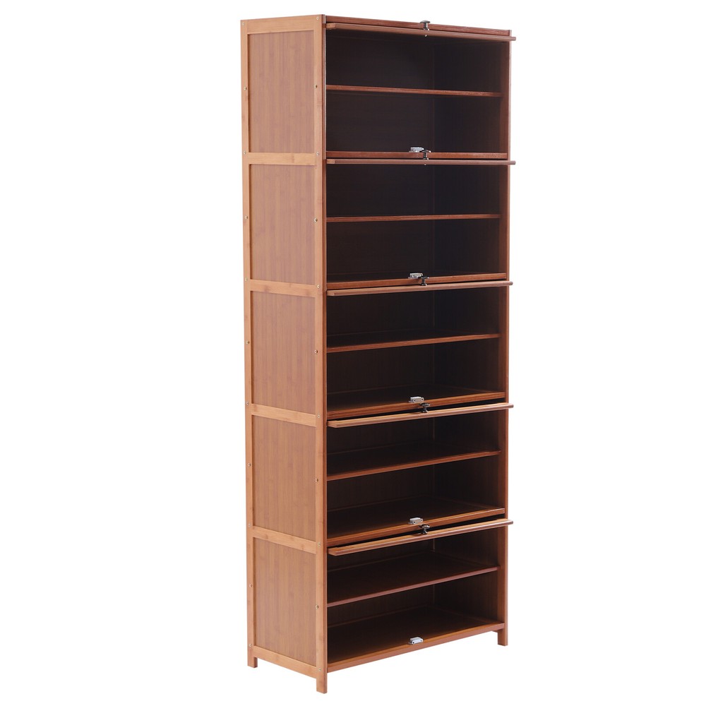$ 33.6632-Inch Bamboo 6-Tier Shoe Cabinet with Flip-Up Doors for Entryway Storage