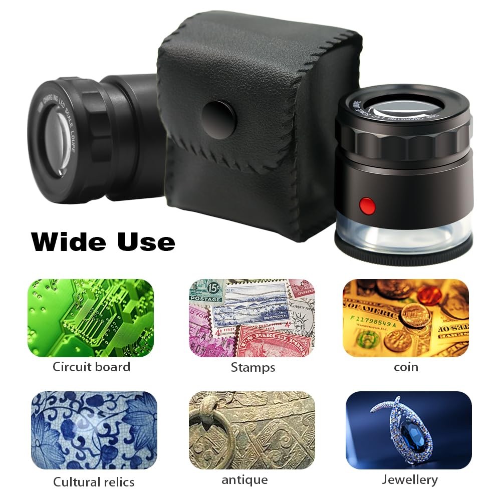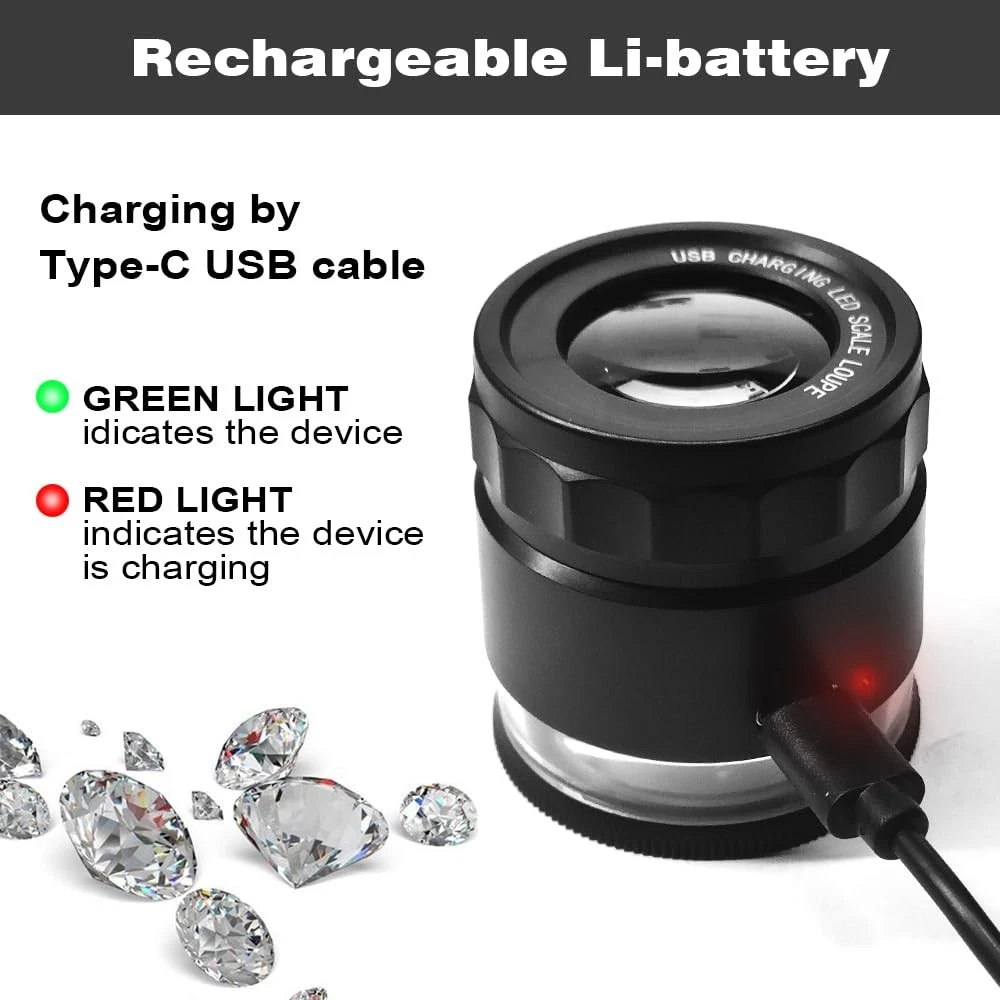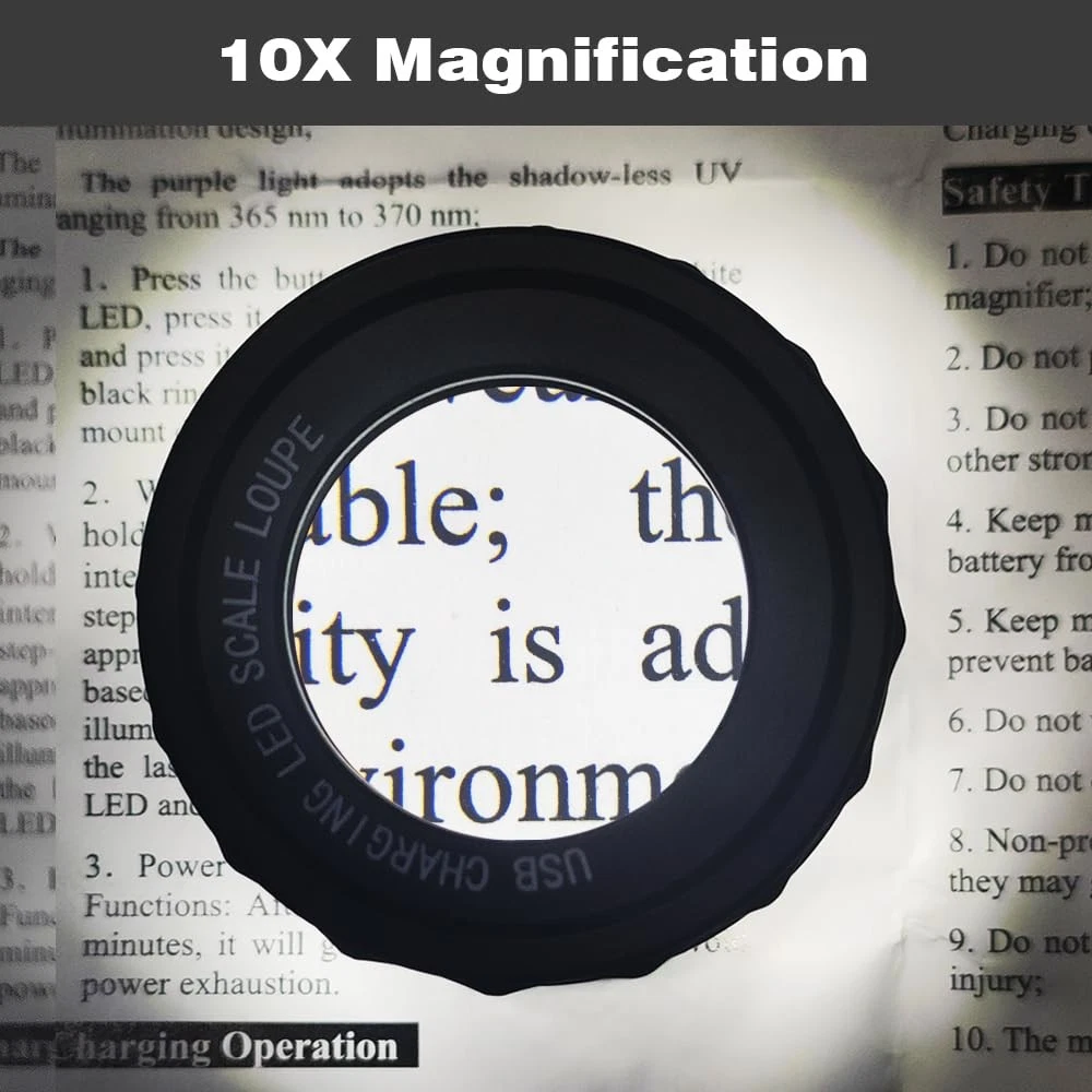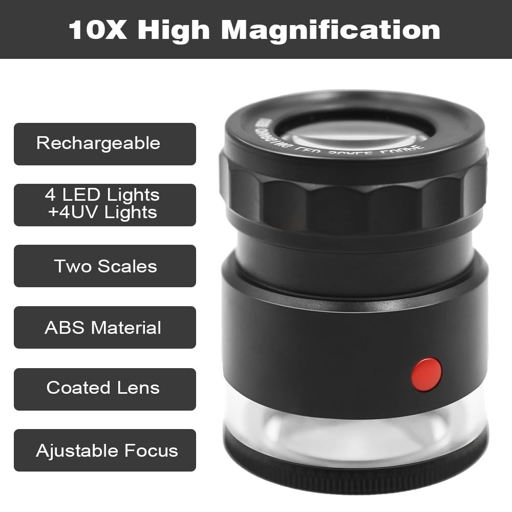 10X Loupe Magnifier Rechargeable Jewelers Loupe with UV and LED Lights,