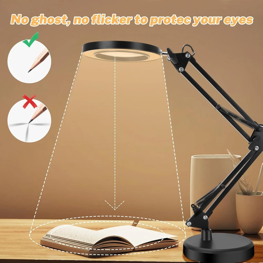 10X Magnifying Glass with Light and Stand, 2 in 1 black stand clamp