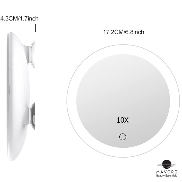 LOW PROFILE LOOK, HIGH PROFILE VISIBILITY: Our latest 10x zoom mirror with light isn’t just a wall mounted makeup mirror for home! Instead of a single suction on a stalk, our low profile triple suction makes it a perfectly portable travel LED makeup mirror too! Bathroom must haves for any location! POWER-SUCTION: You might find the suction on this 10x Magnifying Mirror to be more than you expect, because it holds extra strong (to glass mirror, metal, and most tiles) while other mirrors fall to the floor. If your lighted mirror with magnification grips too tight, use a warm wet cloth to help it. TRUE 10x MAGNIFY MIRROR: This mirror features a Real Glass, 100% Distortion Free, True 10x Magnifying Makeup Mirror Lens that’s best for vision. Our exact concave gives you the large magnifying mirror you were looking for. Down to the reflective backing, this 10x Magnifier Mirror Lens is on point. A LIT MIRROR… LITERALLY! This make up mirror with lighting features strong LED lighting and dimmable functionality in a frameless mirror (ring light) design with Touch Sensor (on/off/dim). Requires 4x AAA batteries, and batteries ARE included with your face mirror. Great camping mirror in the dark! ALSO A TRAVEL MIRROR: Because it’s a slim suction magnifying mirror you can also use these personal mirrors for a travel makeup mirror with lights and magnification! This flat packing suction cup mirror goes anywhere as an office mirror, cubicle mirror, bathtub mirror, or hotel makeup light mirror. THE PERFECT SIZE: At 6.8in, with 10x Magnification this cosmetic mirror is the perfect size as a closet or small wall mirror, shaving mirror or beauty mirror for small bathrooms and over bathtub mirror. Each lighted magnifying mirror comes beautifully packed with a lifetime . Order now from .