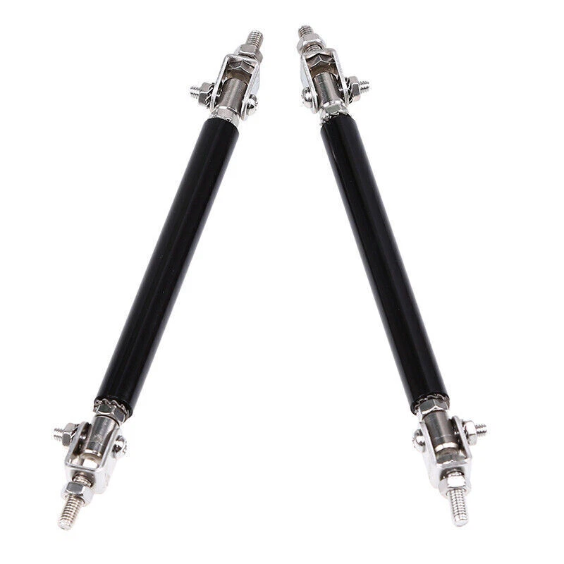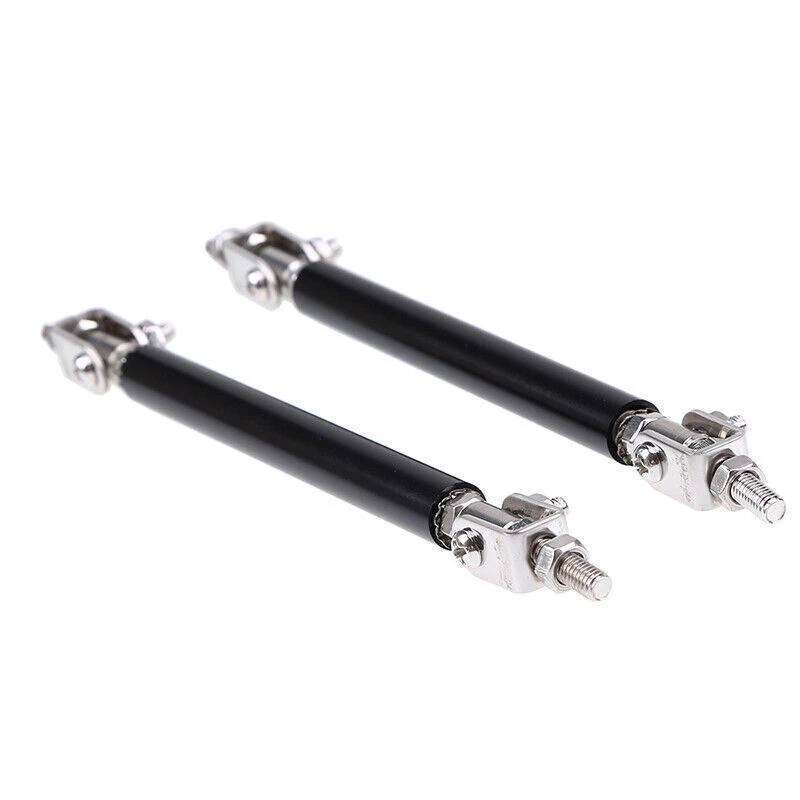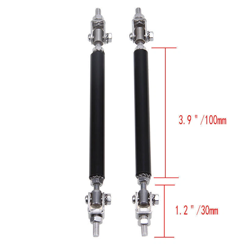 Specification: Type: Strut Rod Color: Black Fitment: Universal Material: Made with premium quality aluminum alloy chrome finish Length: about 10cm , Len gth can be adjustable Function: fixed to the body components front and back (surrounding, skirt, head and tail lips) Feature: - These include fully articulated top and bottom joins which allow them to be installed at any angle. - It will support your vehicle bumper lip splitter stronger with and awesome eye-catching look. - Made with premium quality aluminum alloy chrome finish, high quality and durable. - These front bumper lip support rods are used to reinforce your front splitter or rear diffuser. - It is universal fit for any cars, SUVs, trucks. - It will give your Car a eye-catching look in a minute. Installation: 1.Require drilling holes into the bumper lip diffuser to attach safely to the vehicle. 2.Professional installation is highly recommended. Package Included: One pair (2 pieces) front bumper lip splitter rod strut tie bar