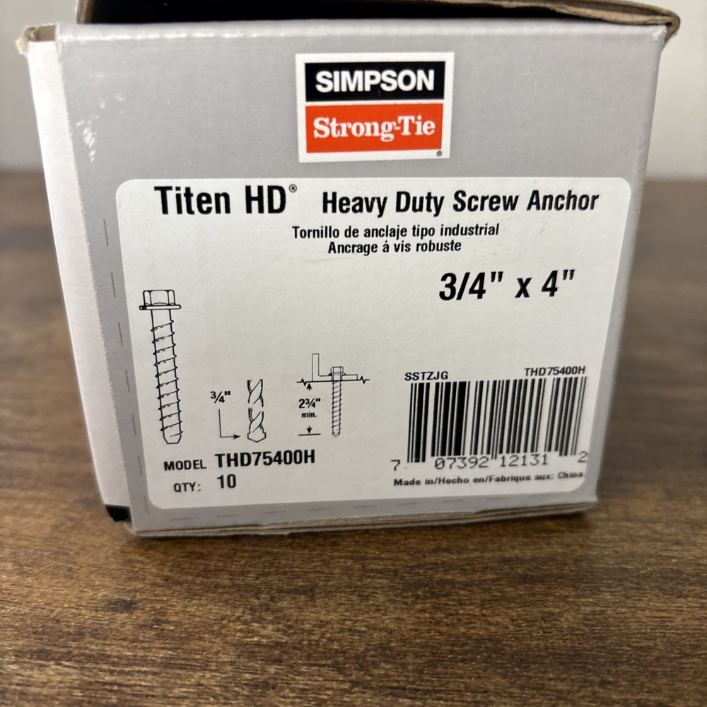 10-count Simpson Strong Tie 3/4" x 4" Titen HD Screw Anchor THD75400H Concrete. Condition is New. Shipped with Standard Shipping.
