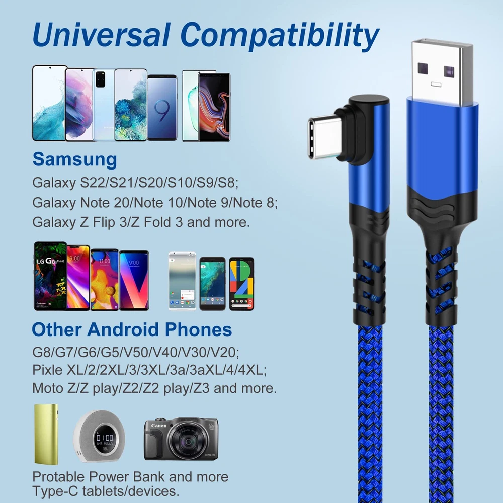 USB C Cable 10Ft, Agtray 4-Pack Long Braided USB a to USB c 90 Degree Plug Type C Right Angle Fast Charging Cord Compatible for Samsung Galaxy S23 S22 S21 S20 Note20, Pixel 7 6 (Red Blue Purple Green) ▷【Long Right Angle USB C Cable】- The USB-C 90 degree connector design is convenient to play games or watch videos while charging, reduce bending and prolong the service life of USB C cable. 10 feet extra-long length can let you play phones freely while charging, you can lie on the couch/bed or use in the car. *NOTE: Do NOT fit for thick phone case, allowed thickness of phone case is 0.05 inch. ▷【USB-C Broad Compatibility】- Works with USB-C port devices. Compatible for Samsung Galaxy S23/S22/S21/S20/S10/S9/S8, Galaxy Z Flip 3/Z Fold 3, Note 20/Note 10/Note 9/Note 8, Galaxy A51/A50s/A70/A70s/A71/A80/A90; LG G5/G6/G7/V20/V30/V40/V50, Stylo 4/5; Pixel 7/6/5/4/3/3a/2 XL, Moto Z/Z play/Z2/Z2 play/Z3; Also compatible with iPad Pro/iPad Air 5 4/iPad mini 6, Switch and more USB Type-C tablets/devices. ▷【Fast Charging Type C Cord】- This USB-A to USB-C cable supports safe and high-speed charging at up to 3A/60W max, much faster than normal cables. Data transfer speed of USB 2.0 port up to 480mb/s, can transfer large files like HD photos or movies quickly. *NOTE: Charging with a Fast Charge Adapter or Original Adapter is recommended. ▷【Durable & Reliable Cable】- Premium nylon braided threading around the cable so that adds additional durability and tangle-free. Metal end and strengthen tail of connectors are of decent quality with a 10000+ bend tested, no easy to break and crack. ▷【What You Get】- 4 pack 10 feet braided USB-A to USB-C 90 degree angle cables, our friendly customer support. If you have any concerns about our product please tell us directly via Amazon. ▷【Long Right Angle USB C Cable】- The USB-C 90 degree connector design is convenient to play games or watch videos while charging, reduce bending and prolong the service life of USB C cable. 10 feet extra-long length can let you play phones freely while charging, you can lie on the couch/bed or use in the car. *NOTE: Do NOT fit for thick phone case, allowed thickness of phone case is 0.05 inch. ▷【USB-C Broad Compatibility】- Works with USB-C port devices. Compatible for Samsung Galaxy S23/S22/S21/S20/S10/S9/S8, Galaxy Z Flip 3/Z Fold 3, Note 20/Note 10/Note 9/Note 8, Galaxy A51/A50s/A70/A70s/A71/A80/A90; LG G5/G6/G7/V20/V30/V40/V50, Stylo 4/5; Pixel 7/6/5/4/3/3a/2 XL, Moto Z/Z play/Z2/Z2 play/Z3; Also compatible with iPad Pro/iPad Air 5 4/iPad mini 6, Switch and more USB Type-C tablets/devices. ▷【Fast Charging Type C Cord】- This USB-A to USB-C cable supports safe and high-speed charging at up to 3A/60W max, much faster than normal cables. Data transfer speed of USB 2.0 port up to 480mb/s, can transfer large files like HD photos or movies quickly. *NOTE: Charging with a Fast Charge Adapter or Original Adapter is recommended. ▷【Durable & Reliable Cable】- Premium nylon braided threading around the cable so that adds additional durability and tangle-free. Metal end and strengthen tail of connectors are of decent quality with a 10000+ bend tested, no easy to break and crack. ▷【What You Get】- 4 pack 10 feet braided USB-A to USB-C 90 degree angle cables, our friendly customer support. If you have any concerns about our product please tell us directly via Amazon. Shipping from the USA All of our products are shipped from the USA, ensuring quick delivery to your destination. Payment We offer the following payment methods: PayPal, credit card, bank transfer, and eBay's secure payment system. Free Shipping & Free Returns Shipping within the USA is FREE. Additionally, any return is absolutely free for you. Risk-Free Purchase You have the option to return an item within 30 days without any justification. We cover the return shipping costs! Fast Shipping We ship immediately upon receipt of payment. Generally, the package is delivered within 2-3 days in the USA. If it takes longer, we will contact you. Quality and Costs Made in Europe, USA, China No customs fees or additional charges Total satisfaction guarantee Invoice with declared VAT available upon request in .pdf format Feedback Your feedback is very important to us. After you pay for your purchase, you will automatically receive positive feedback from us.