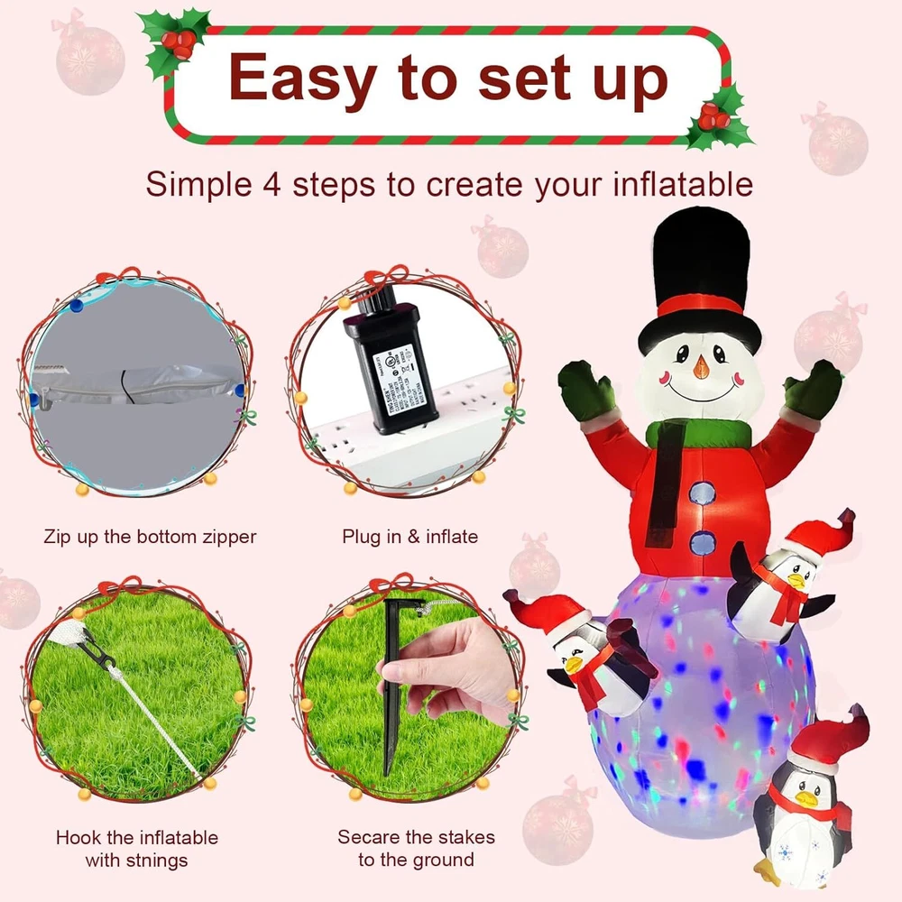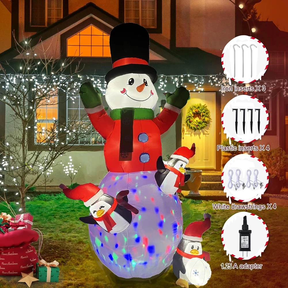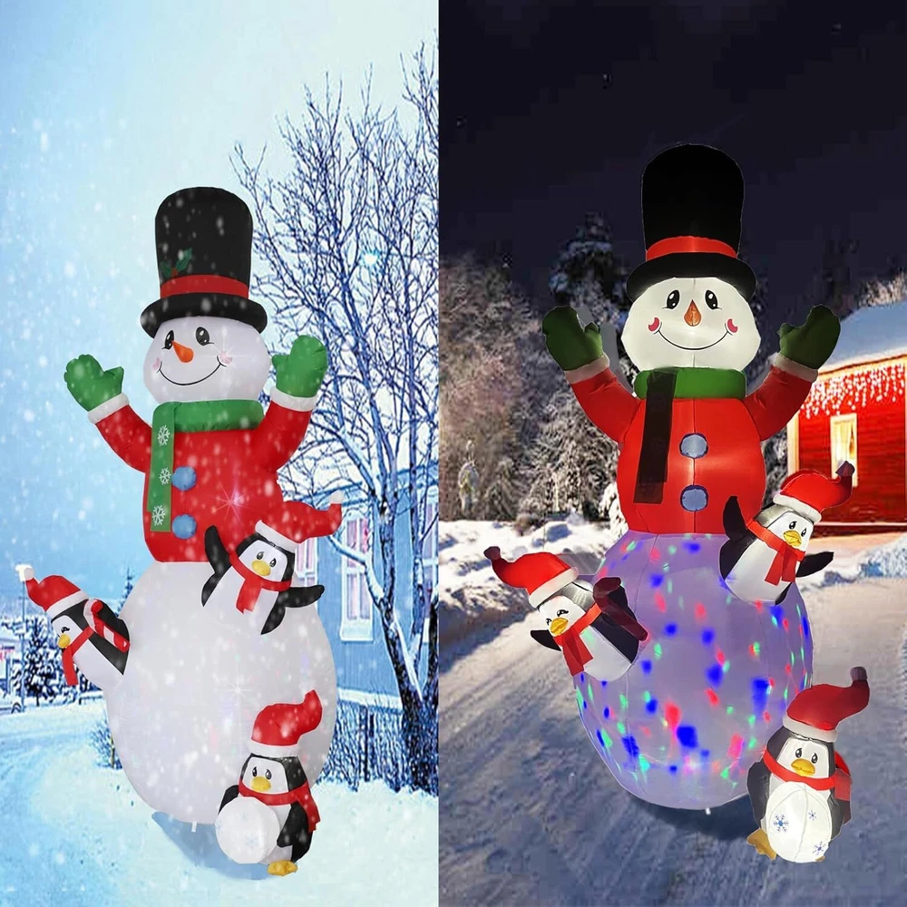 10ft Christmas Inflatable Outdoor Decoration, Kaleidoscope Penguin Snowman Inflatable Yard Decoration with LED Lights for Indoor Outdoor Patio Garden Christmas Decoration… Item Description Adorable Inflatable Snowman Decoration: A large size 10ft tall inflatable snowman with a magic hat. 3 cute penguins are wearing Santa hats and riding Christmas gifts, showing a happy welcome gesture. Bring joy and happiness to your children, kids also love to give them as Christmas gifts to family, friends or loved ones. Make your yard a warm welcome from your neighbors! Built-in bright LED light: There are 5 eye-catching LED lights inside the inflatable snowman, creating a bright and cheerful atmosphere. Just light up your lawn or garden for a Christmas party and put your house in a festive mood. 10 feet is big enough to make your yard stand out and you'll get lots of compliments from neighbors and guests. Give your cute kids a big surprise! Excellent workmanship and durability: This giant inflatable snowman is made of polyester material, which is weatherproof and not easily damaged by sharp and hard objects, excellent stitching enhances durability. When deflated and in good condition and compact, it can be used again. With the long power cord, you can place the inflatable snowman by the door of your house, near the living room. Just add a plug extender to decorate anywhere in your yard and garden High stability for outdoor use: No need to worry about the large 10ft long outdoor Halloween decorations yard will fly away with the wind. Our Christmas inflatable comes with 4 ropes, 4 plastic ground stakes and 3 aluminum ground stakes, attach the ropes to the ground stakes and secure them to the ground. The bi-stable design ensures stability and perfect display of the Christmas snowman ornament outdoors during the holiday season. Indoor and Outdoor Christmas Decorations: Our inflatable snowman is perfect for indoor, outdoor, yard, courtyard, garden decoration, suitable for Christmas event decoration, Christmas night event, New Year and so on. Create a joyous, memorable scene in your home or lawn during the holidays › See more product details Payment We accept payment only through PAYPAL Shipping We ship products worldwide through standard express courier service, it will reach within 7 to 10 days to abroad buyers, we ship the product after recieved clear payment and give full information about shipment to the buyer Return We accept product return within 7 to 21 days from delivery date but product should be in original position and not in damaged condition,the return shipping charges will be buyer responsibility