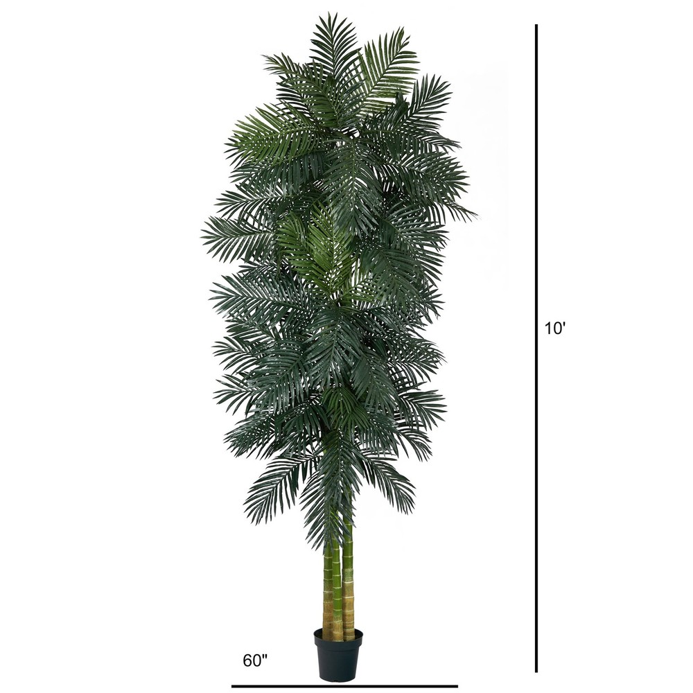 Picture your perfect summer vacation: Where you sun-soak on a hammock, feel the sea breeze hitting your face while sipping on a coconut. Luckily you can now tropic like its hot with this 10' Triple Stalk Golden Cane Artificial Palm Tree. It features lush, green leaves and gorgeous golden palm fronds stemming from a bamboo-like trunk with yellow hues inspired by nature. Standing a tall 10' from a black planter, recreate island life in your sunroom, office (we promise smiling co-workers), or other spaces. Perfect for homes with taller than average ceilings, it's ideal for a loft or any other area with high ceilings. Free Shipping Over $49.99* Details 10' Triple Stalk Golden Cane Artificial Palm Tree Product Description: Picture your perfect summer vacationWhere you sun-soak on a hammock, feel the sea breeze hitting your face while sipping on a coconut. Luckily you can now tropic like its hot with this 10' Triple Stalk Golden Cane Artificial Palm Tree. It features lush, green leaves and gorgeous golden palm fronds stemming from a bamboo-like trunk with yellow hues inspired by nature. Standing a tall 10' from a black planter, recreate island life in your sunroom, office (we promise smiling co-workers), or other spaces. Perfect for homes with taller than average ceilings, it's ideal for a loft or any other area with high ceilings.