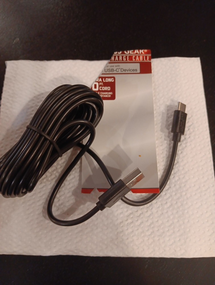 The New WOT USB-C Sync & Charge Cable by gear is a 10ft long charging and data sync cable compatible with various brands such as LG, Samsung. Not for iPhone This black cable has two ports and is designed for universal compatibility. Made in China, this cable is a reliable and convenient accessory for charging and syncing your devices efficiently.