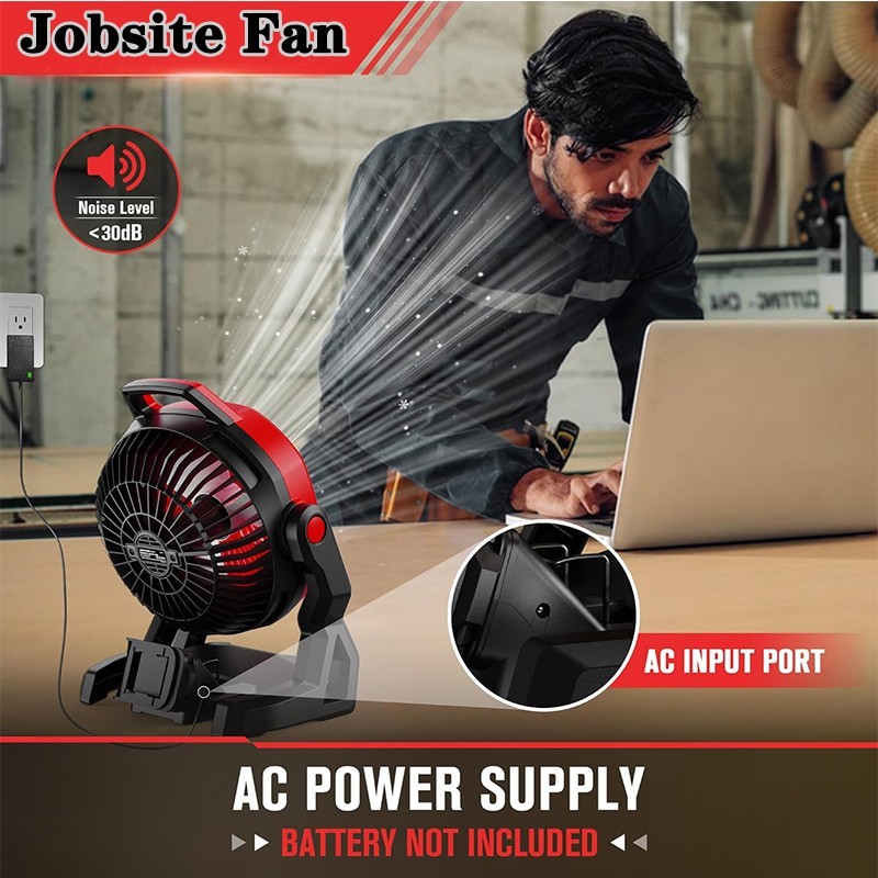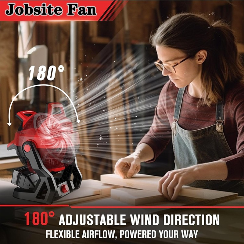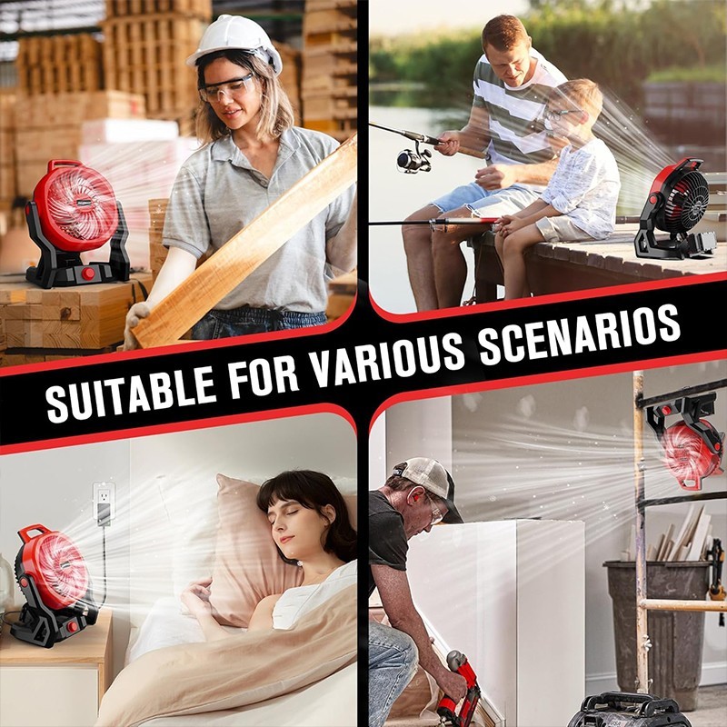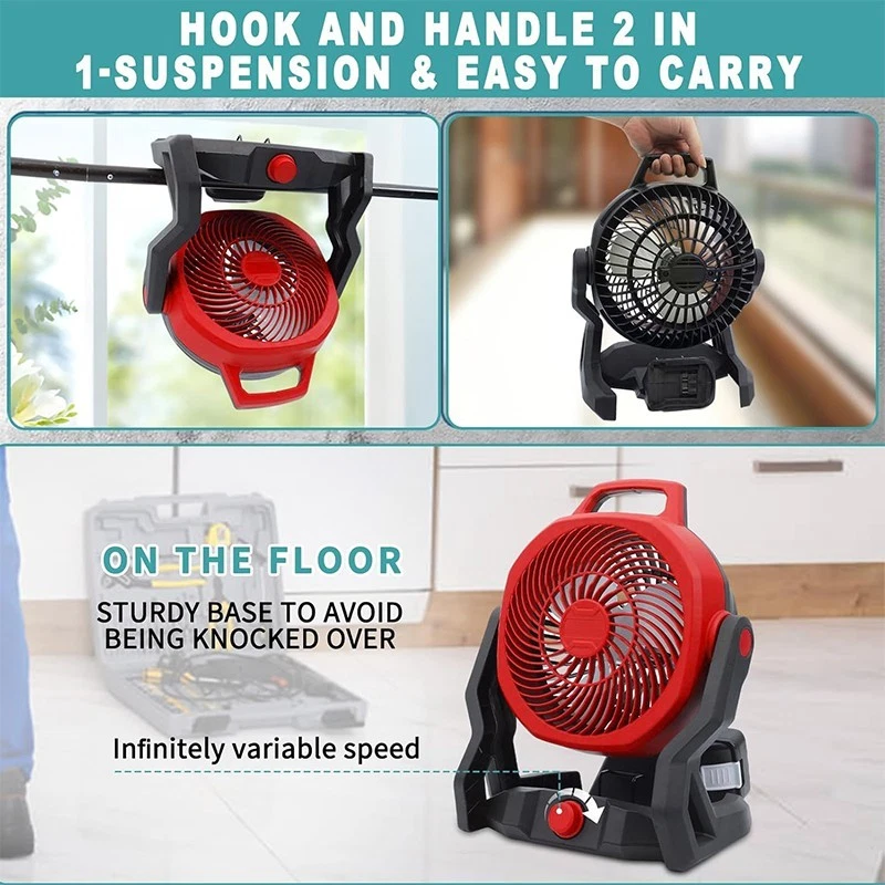 About this item ✅ [Dual-Power Versatility for Any Setting] Enjoy ultimate flexibility with this battery operated fan that compatible with Milwaukee 18V Battery or AC power. Tackle outdoor job sites cord-free with battery operation, then seamlessly switch to AC power indoors. The MekiPow cordless fan adapts to your environment. ✅ [Jobsite-Ready Portability] Engineered with a rugged handle and hidden hanging hook, this battery powered fan goes wherever you work. Carry it to camping sites/construction zones, or hang it vertically in tight spaces. The battery operated fans portable solution for workshops/garages where floor space is limited. ✅ [Built in Brushless Motor] A brushless motor delivers 750 CFM max air fan performance with whisper-quiet operation (25% quieter than others). IP54 certified for dust, FCC/CE/RoHS-certified durability ensures lonoger lifespan - perfect for all-day cooling at work benches or camping fan battery powered adventures. Variable speed lets you fine-tune airflow. ✅ Compateble with Milwaukee M18V Battery (models 448-11-1811, 48-11-1815, 48-11-1820, 48-11-1822, 48-11-1828, 48-11-1840, 48-11-1841, 48-11-1850, 48-11-1852, 48-11-1835, 48-11-1862, 48-11-1865, 48-11-1880, 48-59-181, 48-59-1850 And More). for cordless fans portable rechargeable convenience. NO BATTERY, TOOL ONLY ✅ Multi-Scenario Quiet Cooling From jobsites to tent camping, this battery operated fans portable design outperforms in noise-sensitive environments. Make it ideal for Outdoor, Camping, Workshops, Office, Home, RVs Specifications Color Red (Compatible with Milwaukee 18V Battery) Voltage 18V Wattage 15W Electric fan design Table Fan Power Source suitable for Milwaukee 18V MAX batteries or AC adapter power supply Style Modern Product Dimensions 4.72'' x 11.42'' x 10.63'' Room Type Home Office Special Feature Portable, Hang Hook, AC Adapter, Adjustable Tilt Angle, Low Noise Noise Level <30 dB Warranty 1 Year Warranty What's In Box 1 x 10 inch Portable Fan 1 x AC adapter