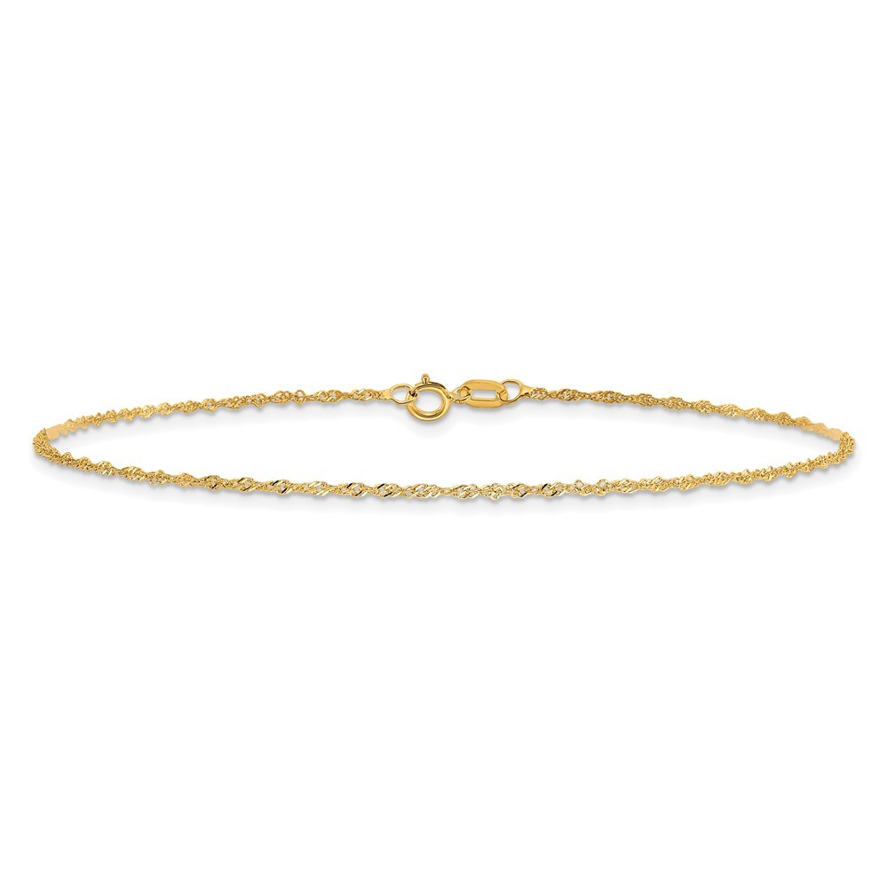 Features: Material Purity:10K Finish:Polished Length of Item:9 in Chain Length:9 in Chain Type:Singapore Chain Width:1.1 mm Clasp /Connector:Spring Ring Feature:Solid Manufacturing Process:Casted Width of Item:1.1 mm Jewelry Type:Anklets Anklet Type:Chain Styles Necklace Type:Chains Gender:Women's Material Color:Yellow Manufacturing Process 2:Machine Made All weights and measurements are approximate and may vary slightly from the listed information. Welcome to diamond_6720 Payments We accept all Ebay approved payment. Please sent the payment to us within 8 days after the auction has ended, or you will have unpaid case auto open by eBay. Shipping Policy We will ship all items within 1 business days of purchase during the work week (M-F) excluding holidays. If you order on Friday, your order will be shipped the following business day. Tracking will be provided when it becomes available. We will only ship to a PayPal Verified Address. Please make sure your address is current and correct. If the information does not match, your order may be canceled. Buyers are responsible for all customs, duties and taxes for your respective countries. Delivery times for International Shipping will vary. California Buyers Pay 9.0% Tax on all orders. case auto open by eBay. Return Policy & Exchange Returns or Exchange are accepted. Buyer must contact us within 30 days after the item is received. Item must be returned in unworn and resalable condition. We will only issue a refund for the purchase price, excluding any shipping fees. If we are at fault, we will provide a full refund. Buyer is responsible for all return shipping costs. BUYERS FEEDBACK If you have any concerns regarding your purchase, please contact us via eBay Message, we assure you that a satisfactory resolution will be reached. Your feedback is very important to us Do remember to give us 5 star rating(*****) if you are satisfied with our product & service .