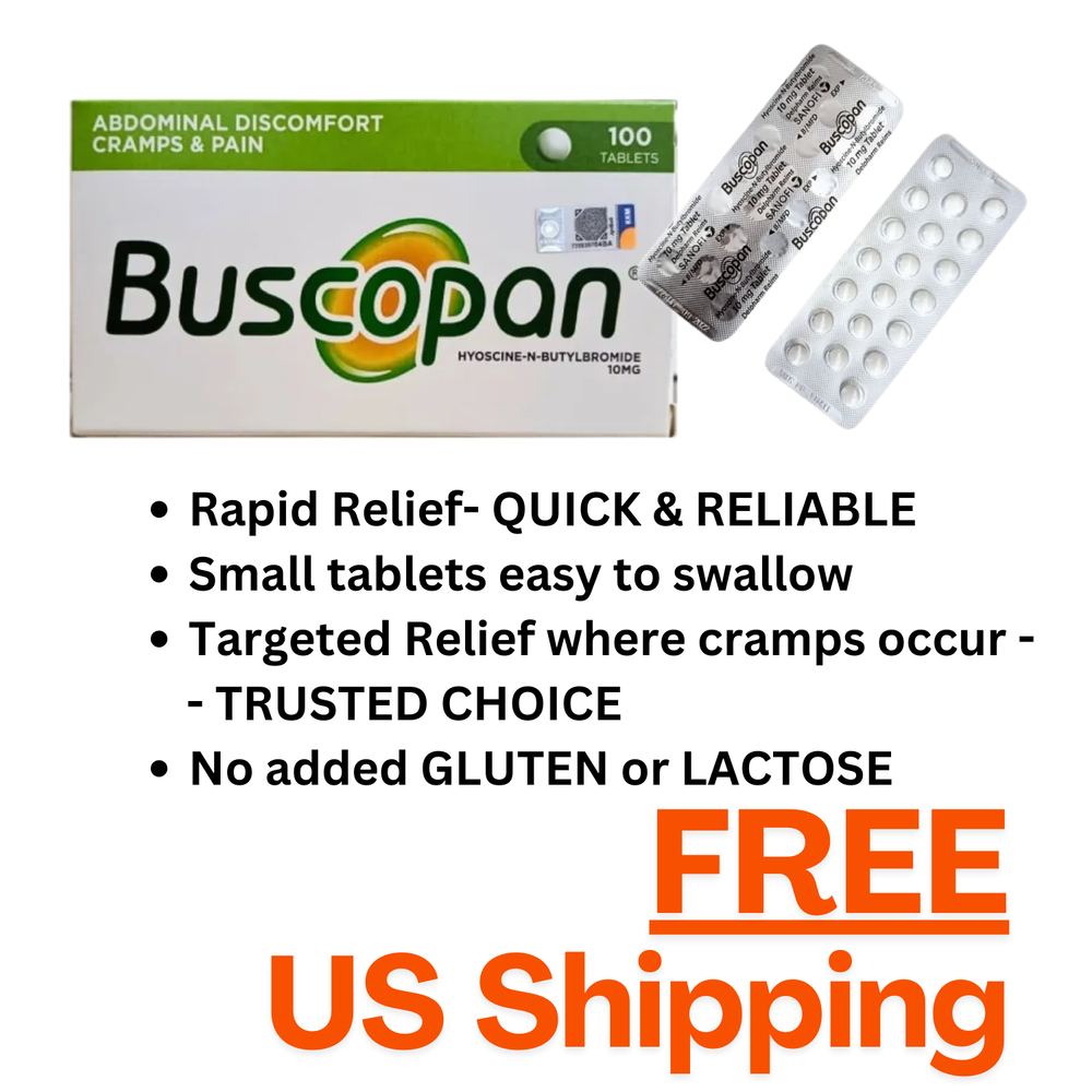Free eBay listing template designed by dewiso.com 10mg 100 tablets Irritable Stomach Discomfort Cramps Pain Relief Free US Shipping Product Description: Buscopan Tablets provide effective relief for abdominal discomfort, including Irritable Bowel Syndrome (IBS), stomach cramps, and spasms. The active ingredient, hyoscine-N-butylbromide, works as an antispasmodic to relax the smooth muscles of the gastrointestinal, biliary, and genito-urinary tracts. Unlike other anticholinergics, Buscopan does not affect the central nervous system, reducing the likelihood of related side effects. Product Highlights: Contains 10 mg of hyoscine-N-butylbromide per sugar-coated tablet. Targets stomach and intestinal cramps, IBS symptoms, and abdominal pain. Non-sedative formulation with minimal central nervous system side effects. Easy-to-swallow sugar-coated tablets for convenience. Long shelf life (EXPIRY: 01/2026). Who Should Have This Product: Individuals experiencing frequent stomach cramps or abdominal pain. IBS sufferers seeking effective relief from spasms and discomfort. Those with mild to moderate gastrointestinal, biliary, or genito-urinary spasms. People looking for a non-drowsy antispasmodic solution. Why You Must Buy: Proven antispasmodic action that works directly on the affected smooth muscles. A trusted solution with decades of clinical use. Helps regain comfort and normal daily activities by alleviating pain quickly. Ideal for managing IBS symptoms, which can otherwise interfere with daily life. Convenient packaging of 100 tablets for extended use. Key Product Benefits: Relief from Cramps and Spasms: Quickly relaxes muscle contractions causing pain and discomfort. Targeted Action: Focuses on the source of the pain without sedation. Ease of Use: Sugar-coated tablets for easier ingestion. Long-lasting Relief: Provides consistent symptom management. Economic Value: 100 tablets per pack for extended relief and convenience. SKU Number: SKCT-28112301 Why Choose Buscopan? For quick, reliable, and non-drowsy relief from abdominal cramps and IBS symptoms, Buscopan is a trusted choice for restoring comfort and daily well-being. Contact us Feel free to reach out to us via eBay messages at any time if you have any inquiries, feedback, or product requests. We commit to getting back to you within 24 hours and providing our utmost assistance! We welcome our customers to get in touch with us for any queries or issues! Our priority is to ensure your complete satisfaction with your purchase. GIVE US A CALL SEND US A MESSAGE Feel free to check out my other available items! Thank you so much for your interest! Payment We currently accept payments through eBay's managed payment system. Please note that items will not be shipped until full payment is received. Payment must be completed or arranged within five days of purchase. If payment is not received within this time, an unpaid item dispute will be filed Shipping We ship using DHL Express, DHL eCommerce, UPS Mail Innovations, and USPS First Class . Handling time is 1-2 business days, and all shipments include a valid tracking number. Every product is carefully packed and wrapped in bubble wrap to minimize the risk of damage during transit. Estimated delivery time is 3 to 7 business days. Return Returns are accepted and can be initiated within 30 days . Return Shipping: The buyer is responsible for the cost of return shipping. Refund: A full refund will be issued in the form of money back. Feedback If you’re happy with our service, we’d greatly appreciate it if you could leave a positive 5-star review. If you’re not fully satisfied, please contact us right away so we can resolve the issue promptly. Thank you for your support! Note: Import duties, taxes, and additional charges are not included in the item price or shipping cost. These customs fees and taxes are the buyer's responsibility. aylafelisy_76 : Your e-TRUST Partner .