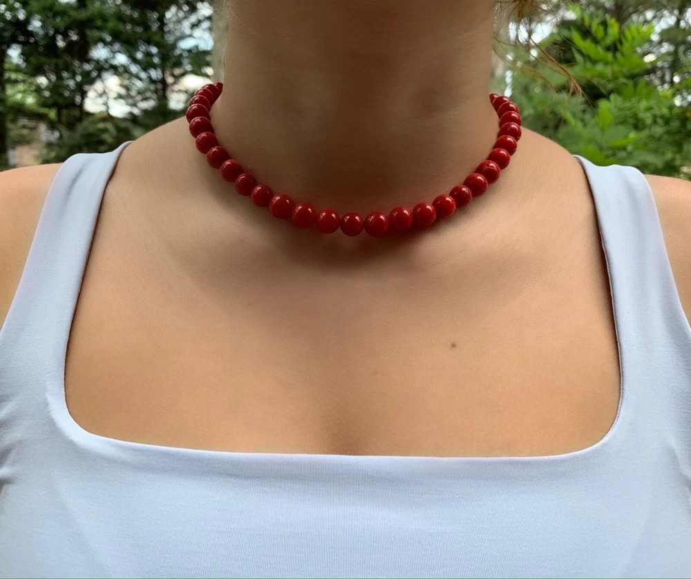 For cool summer fun or cozy winter warmth, this 1 strand 10mm coral bead necklace will be just the right addition to your look. The necklace is presented with a silver plated, sterling silver or 24k gold plated clasp(your choice), and a 2 inch extension that makes it easy to adjust the size. *We do welcome wholesale requests for your special occasion or for you to resell, please just send me a convo to discuss quantity, availability, and pricing information.* It is my best interest to design long lasting beautiful pieces of jewelry for you that you will be proud to wear for many years! I design all my jewelry with care and passion. Thank you for browsing through my shop! Any questions about my designs or comments, please feel free to contact me