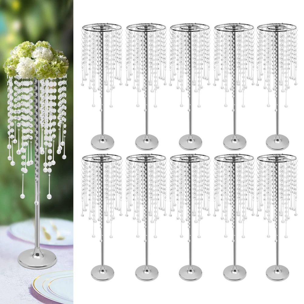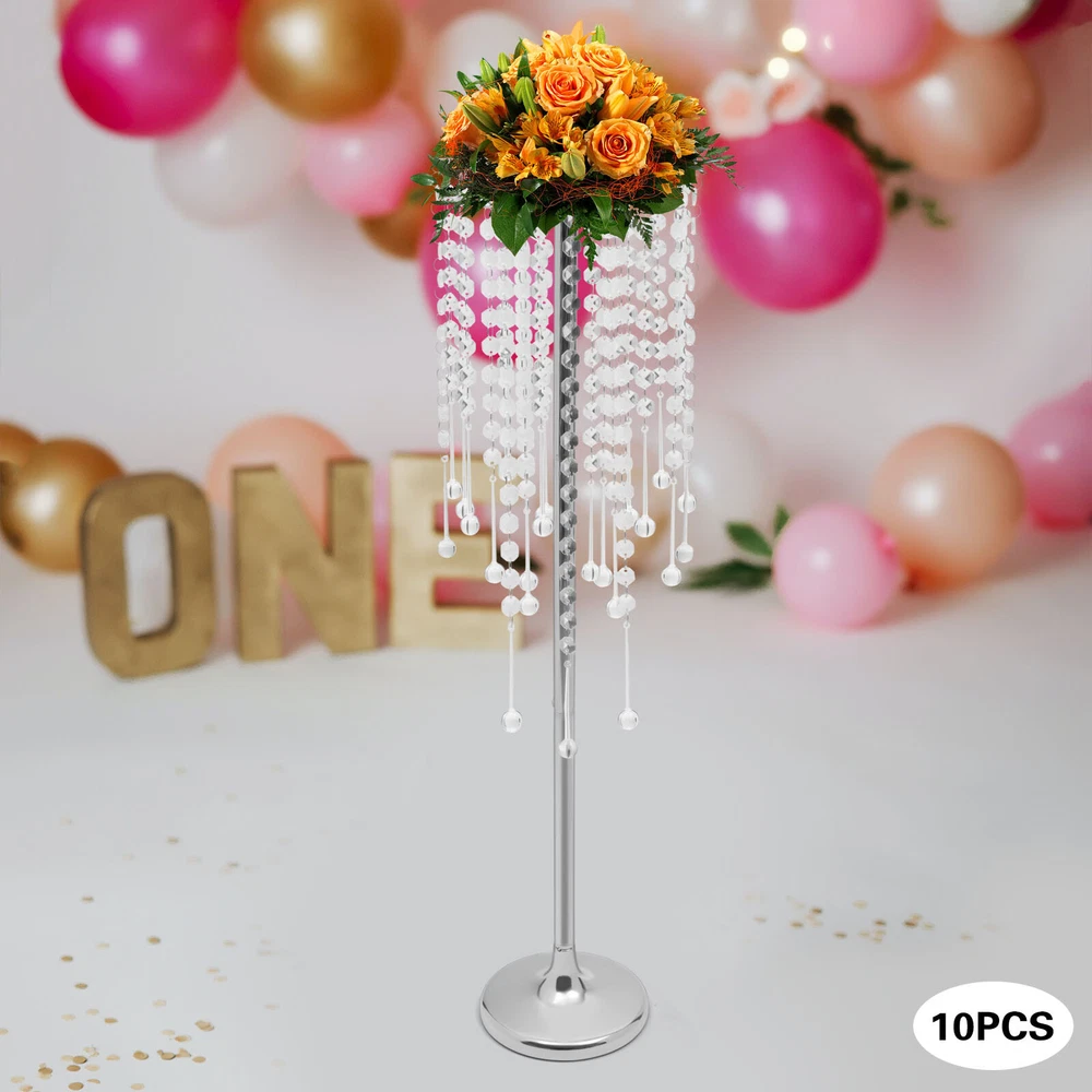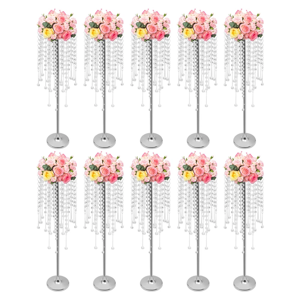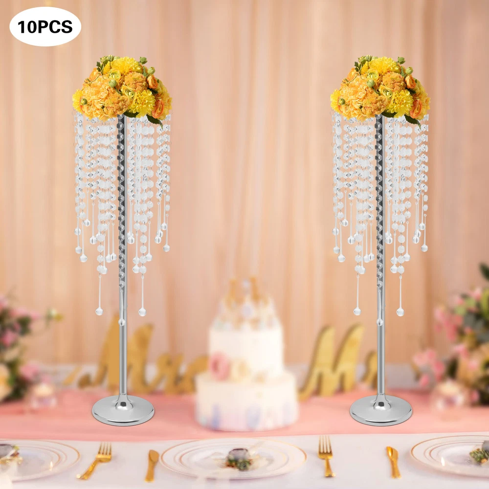 10pc Crystal Silver Flower Stand 75cm Large Flower Stand Wedding Decor