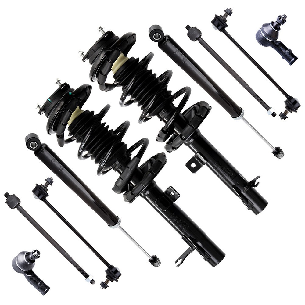 Vehicle Fitment : 10 Pcs Strut Spring Shock Tie Rod Sway Bar Link Suspension For 00-05 Ford Focus Vehicle Fitment : 2002-05 Ford Focus ZX5 Sedan Front & Rear Steering & Suspension Kit 2002-04 Ford Focus ZTW Sedan Front & Rear Steering & Suspension Kit 2000-05 Ford Focus ZX3 Sedan Front & Rear Steering & Suspension Kit 2000-05 Ford Focus SE Sedan Front & Rear Steering & Suspension Kit 2000-04 Ford Focus ZTS Sedan Front & Rear Steering & Suspension Kit 2000-04 Ford Focus LX Sedan Front & Rear Steering & Suspension Kit 2000 Ford Focus Sony Limited Edition Sedan Front & Rear Steering & Suspension Kit 2005 Ford Focus ZXW Hatchback Front & Rear Steering & Suspension Kit 2005 Ford Focus ZX4 ST Hatchback Front & Rear Steering & Suspension Kit 2005 Ford Focus ZX4 Hatchback Front & Rear Steering & Suspension Kit 2002-05 Ford Focus ZX5 Hatchback Front & Rear Steering & Suspension Kit 2000-05 Ford Focus ZX3 Hatchback Front & Rear Steering & Suspension Kit Item Descriptions: * Upper Strut Mount: Superior premium-style bearings.SAE-grade nuts and bolts.Superior rubber-to-steel bonding.All components manufactured to meet Superior performance. * Hollow Bumper: The premium bumper prevents component damage when the suspension bottoms out. *Coil Spring: Manufactured with high-quality steel, each coil spring is precisely calibrated to support the vehicle's weight and help ensure correct ride height. *Upper Spring Seat: The upper spring seat provides consistent performance without transmitting noise or vibration into the chassis. Also supports the vehicle's weight and helps properly offset the spring in the strut tower. *Strut Dust Boot: The durable strut boot can protect the strut rod and seals to increase the lifespan of shock strut. *Lower Spring Isolators: Prevents metal to metal contact and helps eliminate noise between the spring and spring seat. *NEW Premium Strut: Premium strut technology based on application. Each strut features application-engineered valving to complement each vehicle's unique ride and handling characteristics. Features: Consistent with the original standard specification Adopt standardized design, unified manufacturing and quality control system to ensure the consistency of damping Improve comfort Effectively absorb and damp shock impulses, improve ride comfort and extend the service life of related parts Long service life Made with high-quality imported materials and advanced technology Enhance ride safety Automatically adjust under different load conditions to maintain a constant height of the vehicle body and ensure driving safety Suspension Kit Precision-machined, advanced technology, low-friction polymer upper bearing provides smoother, easier steering, improved return-to-center, and eliminates endplay Powdered metal lower bearings for improved assembly strength Anti-corrosive coating provides protection from the harshest driving conditions Heat-treated, precision finished, ball ends for consistent torque and smooth operation throughout the entire range of driving Case-hardened, full-ball type stud offers tighter overall fit and improved stability Manufactured to meet or exceed expectations on performance and fit The steps to install:( Tools needed Jadks, Socket Set,Wrench,Gloves) Step 1: Raise and Secure your Car.Vheel Removal When the car is jacked up safely. remove the front wheels. Step 2: Ball joint Remove thne lower ball joint from the control arm Then remove the tire and old struts. Step 3: instaling the New Complete Strut Note: Replacing struts used to require specialized tools to compress, remove, and transfer the old spring and mount. Our Pre-assembled, complete strut & spring assemblies come with all new parts and make the job much quicker and easier for the do-it-yourself mechanic . Each Package Include: 2pcs Front Complete Struts & Coil Spring - 171505 2pcs Rear Shocks Absorber Strut - 5796 1x Front Outer Tie Rod End - Passenger - ES3587 1x Front Outer Tie Rod End - Driver Side - ES3588 2x Front Inner Tie Rod End - EV419 2x Front Sway Bar End Link - K80066 Item Specifics Brand Bator Manufacturer Part Number BRO823819TR Warranty 1 Year Fitment Type Direct Replacement Placement on Vehicle Front,Rear,Left,Right Adjustable No Modified Item No Greasable or Sealed Sealed Gas Charged Shock Yes Express Split shipment Payment Policy PayPal preferred. Shipping & Handling Time Shipping: Delivery Time is about 3-7 business days to most of countries. All domestic orders will be shipped via USPS, UPS or FedEx from our US warehouse and usually arrives to your door in about 2-7 business days. Return Policy Seller will be responsible for return if there's any quality problem or wrong message provided in listing. Be sure to check the compatible chart above, and be sure you have chosen the right item. Warranty Policy All of our brand new items come with a 60-Days money-back guarantee. Contact Us - Confused in confirming the compatibility about the item; - Puzzled in how to install the item to your vehicle/car/truck/etc.; We are always here to answer and reply. Rotors & Pads Brake Rotors Brake Pads Brake Calipers Other Brake Parts Shop Category Store Home ATV & UTV CV Axle Shaft Assy steering knuckle-7 ABS Wheel Sensor Air & Fuel Delivery ◈ Air Intake & Fuel Sensors Air Cleaner Filter Box Auto CV Axle Shaft Assembly Auto Spoiler Wings Bed Step Body Cab Mount Bushing Kit Brake Caliper Brake Calipers & Pads Brake Calipers & Rotors & Pads Brake Drums Brake Dust Shield Brake Pad Sensors Brake Pads Brake Rotors Brake Rotors & Pads Brake Shoes cargo cover Engine Oil Dipstick Exterior Parts & Accessories ◈ Bumpers & Components Fuel Pump Assembly Headlight Assembly Hub Caps Jake Stand Leveling Lift Kit Lift Supports Other Splash Guards & Mud Flaps Steering & Suspension ◈ Air Suspension Spring ◈ Shocks, Struts & Assemblies Steering Shaft Steering Wheels & Horn Butt Throttle Body Assembly Trailer Tools Series Turbocharger UTV & ATV Brake System Parts Wheel Hub Bearing Wheel Hub Bearin