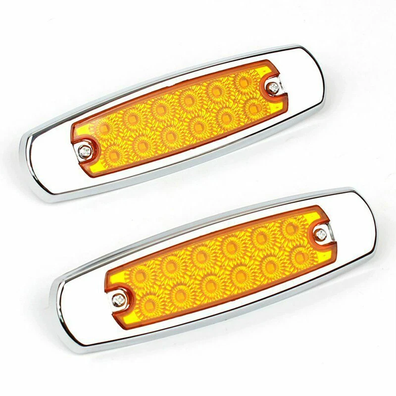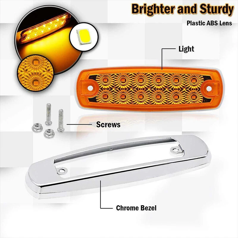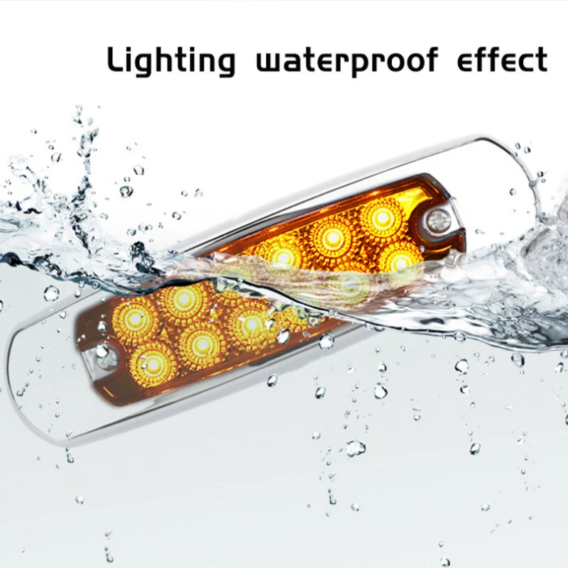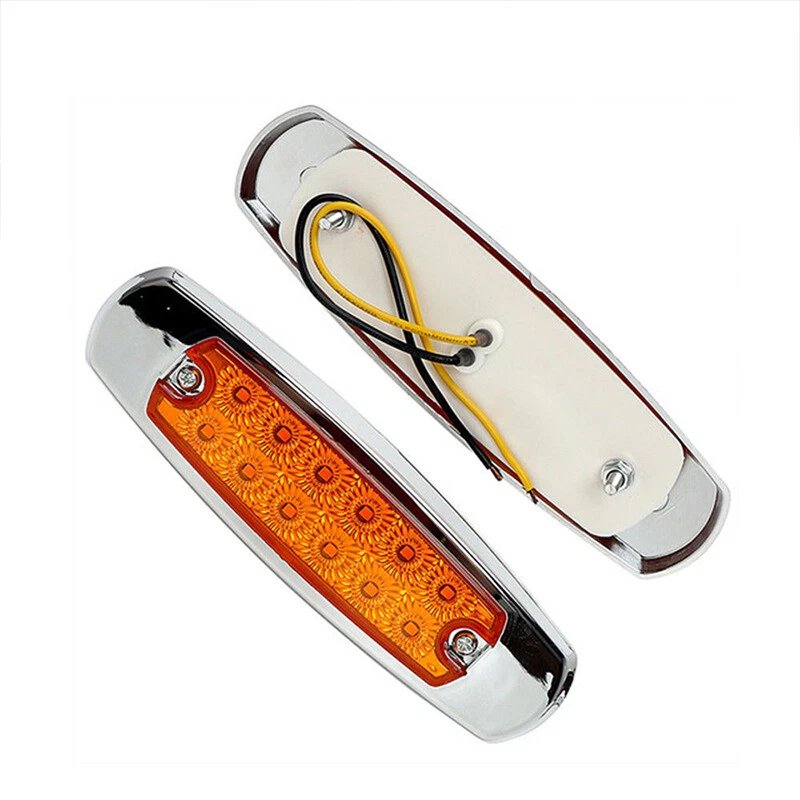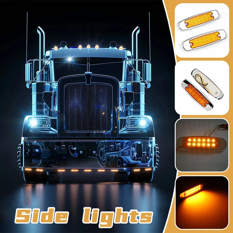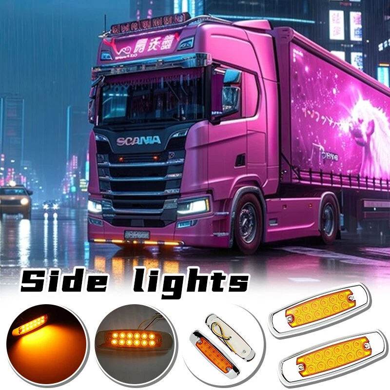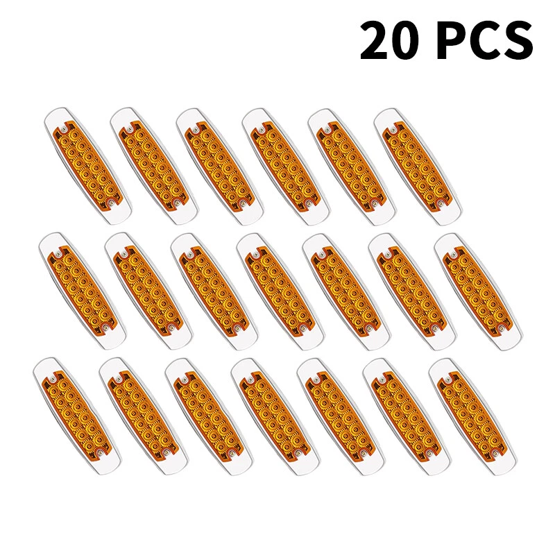 Applicable vehicle models: trucks, freight cars, Waterproof rating: IP67 1. Material: AS lampshade 2. Model number; LED truck edge lights 3. Color: Yellow 4. Power: 12 * 0.3 W 5. Voltage: 12-24V wide voltage 6. Number of LED beads: 12 7 types of LED beads: 2835 LED beads 8. Wiring method: Black negative pole, colored positive pole contain: 10/20pcs side lights Pls note: 1. Due to different computer display colors, the actual color may be slightly different from the above pictures. 2. Due to manual measurement, please allow 1-3cm error.