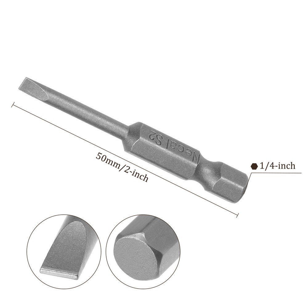 Document APPLICATION- Fit for electric screwdriver, manual screwdriver, power drill and other pneumatic or power tools with 1/4" hex holder. Widely used in cars, trucks, engines, motorcycles, computers, cable boxes and other applications.ABOUT THIS PRODUCT- Made of S2 alloy steel, which is a commonly used material in hardware with high hardness.- Sandblasting surface, corrosion resistance and durability.- Magnetic tip, can suck the screws easily when used it.- Exquisite workmanship, each edge can be accurately locked screws, no damage to the screw, and the screwdriver head.SPECIFICATIONBit Type: T15 Shank: 1/4“ Hex ShankLength: 50mm / 2”Material: S2 Alloy SteelFinish: SandblastingPackage: 10 packs of Flat Head Screwdriver BitTAKE NOTICE OF- Do not turn the screws with mismatched size to avoid damage to both the screw and the drill. 10pcs Slotted Screwdriver Bit - [2" x H1/4 x SL3] Magnetic for Power Tool Use APPLICATION - Fit for electric screwdriver, manual screwdriver, power drill and other pneumatic or power tools with 1/4" hex holder. Widely used in cars, trucks, engines, motorcycles, computers, cable boxes and other applications. ABOUT THIS PRODUCT - Made of S2 alloy steel, which is a commonly used material in hardware with high hardness. - Sandblasting surface, corrosion resistance and durability. - Magnetic tip, can suck the screws easily when used it. - Exquisite workmanship, each edge can be accurately locked screws, no damage to the screw, and the screwdriver head. SPECIFICATION Bit Type: T15 Shank: 1/4“ Hex Shank Length: 50mm / 2” Material: S2 Alloy Steel Finish: Sandblasting Package: 10 packs of Flat Head Screwdriver Bit TAKE NOTICE OF - Do not turn the screws with mismatched size to avoid damage to both the screw and the drill. Hot Item Payment 1.We accept eBay payment . 2.Payment must be received within 7 business days of auction closing. Shipping 1.We ship to your eBay or Paypal address. Please make sure your eBay and Paypal address is correct before you pay. 2.Items will be shipped within 1-3 business day when we received payment. 3.Delivery time depends on destination and other factors. Description Policy 10pcs Slotted Screwdriver Bit - [2" x H1/4 x SL3] Magnetic for Power Tool Use APPLICATION - Fit for electric screwdriver, manual screwdriver, power drill and other pneumatic or power tools with 1/4" hex holder. Widely used in cars, trucks, engines, motorcycles, computers, cable boxes and other applications. ABOUT THIS PRODUCT - Made of S2 alloy steel, which is a commonly used material in hardware with high hardness. - Sandblasting surface, corrosion resistance and durability. - Magnetic tip, can suck the screws easily when used it. - Exquisite workmanship, each edge can be accurately locked screws, no damage to the screw, and the screwdriver head. SPECIFICATION Bit Type: T15 Shank: 1/4“ Hex Shank Length: 50mm / 2” Material: S2 Alloy Steel Finish: Sandblasting Package: 10 packs of Flat Head Screwdriver Bit TAKE NOTICE OF - Do not turn the screws with mismatched size to avoid damage to both the screw and the drill. Hot Item Payment 1.We accept eBay payment . 2.Payment must be received within 7 business days of auction closing. Shipping 1.We ship to your eBay or Paypal address. Please make sure your eBay and Paypal address is correct before you pay. 2.Items will be shipped within 1-3 business day when we received payment. 3.Delivery time depends on destination and other factors.