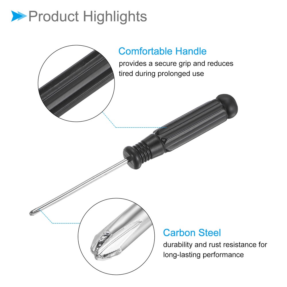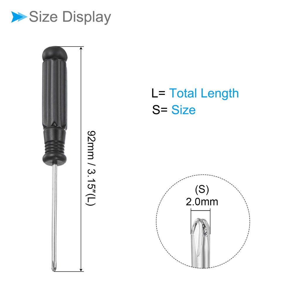 Document Attributes:* Size: 2.0mm* Total Length: 92mm / 3.15-inch* Shaft Material: Carbon SteelWhat Is Included:* 10 Pieces x Micro ScrewdriversApplications & Features:--- This screwdriver is a multifunctional tool suitable for a variety of electronic devices and appliances and can be used on laptops, computers, game consoles, pocket knives, doorbells, dishwashers, routers, and more.--- The screwdriver features a comfortable handle that provides a secure grip and reduces tired during prolonged use--- The screwdriver is made from carbon steel material ensuring strength, durability and rust resistance for long-lasting performance.Useful Tips:--- Please confirm the screwdriver size before buying. 10pcsSmall Phillips Screwdriver 2.0mm 92mm Cross Screwdriver W Black Handle Attributes: * Size: 2.0mm * Total Length: 92mm / 3.15-inch * Shaft Material: Carbon Steel What Is Included: * 10 Pieces x Micro Screwdrivers Applications & Features: --- This screwdriver is a multifunctional tool suitable for a variety of electronic devices and appliances and can be used on laptops, computers, game consoles, pocket knives, doorbells, dishwashers, routers, and more. --- The screwdriver features a comfortable handle that provides a secure grip and reduces tired during prolonged use --- The screwdriver is made from carbon steel material ensuring strength, durability and rust resistance for long-lasting performance. Useful Tips: --- Please confirm the screwdriver size before buying. Hot Item Payment 1.We accept eBay payment . 2.Payment must be received within 7 business days of auction closing. Shipping 1.We ship to your eBay or Paypal address. Please make sure your eBay and Paypal address is correct before you pay. 2.Items will be shipped within 1-3 business day when we received payment. 3.Delivery time depends on destination and other factors. Description Policy 10pcsSmall Phillips Screwdriver 2.0mm 92mm Cross Screwdriver W Black Handle Attributes: * Size: 2.0mm * Total Length: 92mm / 3.15-inch * Shaft Material: Carbon Steel What Is Included: * 10 Pieces x Micro Screwdrivers Applications & Features: --- This screwdriver is a multifunctional tool suitable for a variety of electronic devices and appliances and can be used on laptops, computers, game consoles, pocket knives, doorbells, dishwashers, routers, and more. --- The screwdriver features a comfortable handle that provides a secure grip and reduces tired during prolonged use --- The screwdriver is made from carbon steel material ensuring strength, durability and rust resistance for long-lasting performance. Useful Tips: --- Please confirm the screwdriver size before buying. Hot Item Payment 1.We accept eBay payment . 2.Payment must be received within 7 business days of auction closing. Shipping 1.We ship to your eBay or Paypal address. Please make sure your eBay and Paypal address is correct before you pay. 2.Items will be shipped within 1-3 business day when we received payment. 3.Delivery time depends on destination and other factors.