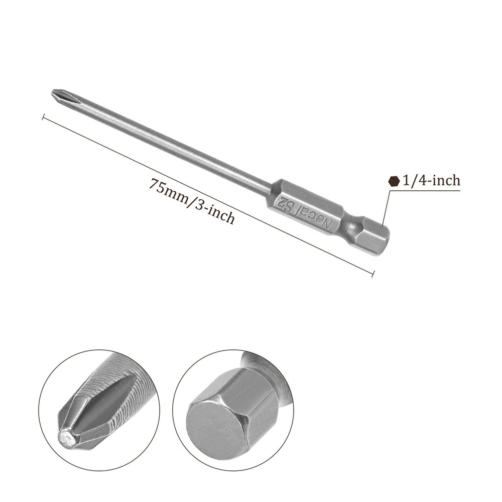 10pcs Phillips Screwdriver Bit - [2" x H1/4 x 1.6mm x PH00] Magnetic Power Tool