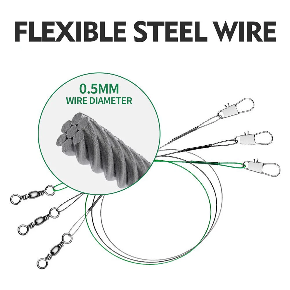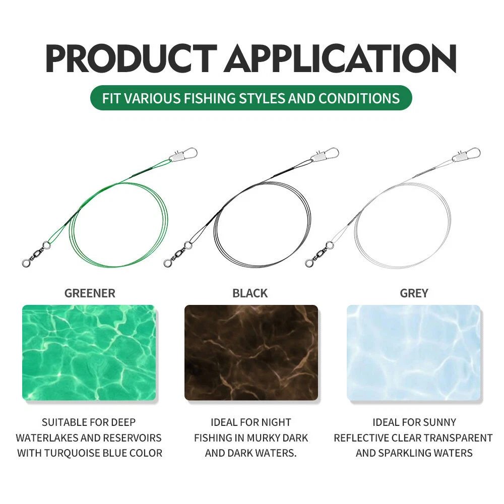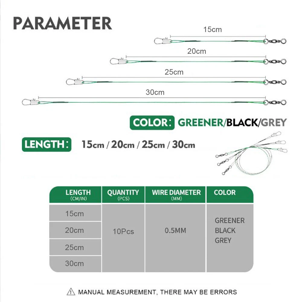 DESCRIPTION Features: 1)Fishing tackle leader: made of premium stainless steel, nylon-coated, to ensure these high-quality leaders are tough enough for sharp teeth, stronger. 2)Perfect fishing equipment leader, corrosion resistant, durable, and tough enough for fishes with sharp teeth, with swivel and clip, is easy to connect fishing lure, fishing bait, fishing hooks, weight set. great for use in both saltwater and freshwater. 3)Fishing accessories of steel leaders are great for toothy fish, such as pike, catfish, trout, crappie, striped, bass, eagle claw, northern pike. Details Color: green / black / grey Length: 15cm, 20cm, 25cm, 30cm Weight: 0.72g/pc; 0.76g/pc; 0.83g/pc; 0.86g/pc Package: 10PCS Fishing Wire Leader Notice: 1.Due to the difference showing indifferent monitors, the picture may not reflect the actual color of the product. 2.Please allow 1-2CM error due to the manual measurement. Hope you can understand. Thank you! SHIPPING The package will be delivered within the promised time shown on the order. Normally,the displayed time will be longer than actual time. Package will arrive in 10-25 business days. The arrival time depends on some factors and different areas. TERMS OF SALE Please Note: Import duties, taxes, and charges are not included in the item price or shipping fee. These charges are the buyer's responsibility. If you buy goods in a big way ,please contact us to enquiry a lower price !!!!!!!! ABOUT US Our working time: Beijing time:Monday to Saturday 8:00 am to 5:00 pm We do not work in holidays of China We will reply your email in 24 hours. If you are not satisfied with the product or service,please contact us and don't give us negative or natural feedback,We will give you a satisfactory solution. Features: 1)Fishing tackle leader: made of premium stainless steel, nylon-coated, to ensure these high-quality leaders are tough enough for sharp teeth, stronger. 2)Perfect fishing equipment leader, corrosion resistant, durable, and tough enough for fishes with sharp teeth, with swivel and clip, is easy to connect fishing lure, fishing bait, fishing hooks, weight set. great for use in both saltwater and freshwater. 3)Fishing accessories of steel leaders are great for toothy fish, such as pike, catfish, trout, crappie, striped, bass, eagle claw, northern pike. Details Color: green / black / grey Length: 15cm, 20cm, 25cm, 30cm Weight: 0.72g/pc; 0.76g/pc; 0.83g/pc; 0.86g/pc Package: 10PCS Fishing Wire Leader Notice: 1.Due to the difference showing indifferent monitors, the picture may not reflect the actual color of the product. 2.Please allow 1-2CM error due to the manual measurement. Hope you can understand. Thank you! SHIPPING The package will be delivered within the promised time shown on the order. Normally,the displayed time will be longer than actual time. Package will arrive in 10-25 business days. The arrival time depends on some factors and different areas. Terms of Sale Please Note: Import duties, taxes, and charges are not included in the item price or shipping fee. These charges are the buyer's responsibility. If you buy goods in a big way ,please contact us to enquiry a lower price !!!!!!!! ABOUT US Our working time: Beijing time:Monday to Saturday 8:00 am to 5:00 pm We do not work in holidays of China We will reply your email in 24 hours. If you are not satisfied with the product or service,please contact us and don't give us negative or natural feedback,We will give you a satisfactory solution.
