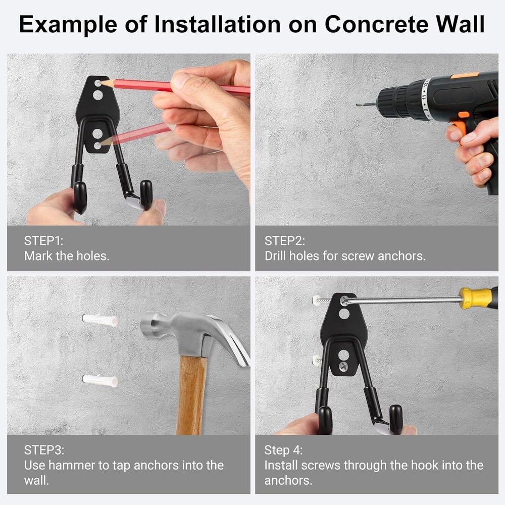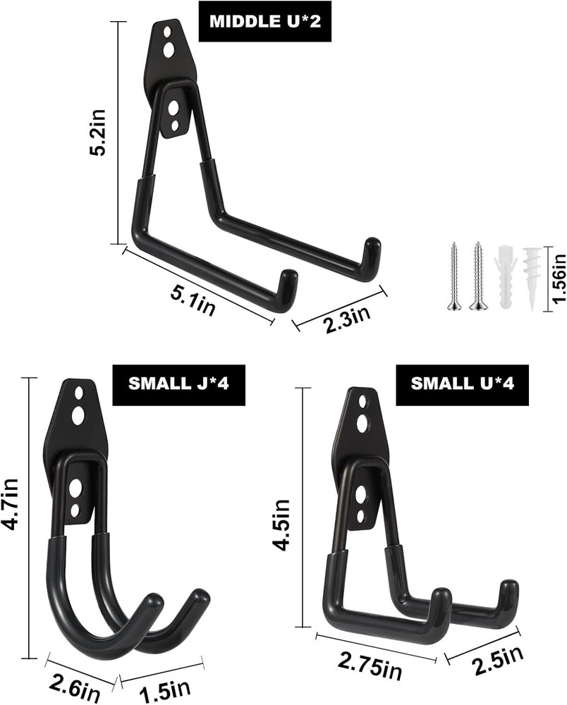 Free eBay listing template designed by dewiso.com Steel Garage Hooks Wall Tool Organizer, 10pcs Garage Storage Hook Heavy Duty Utility Storage Hangers Black for Ladders, Ropes, Garden Tools FREE AND FAST SHIPPING! About this item Versatile Storage Hanging Hooks: Double wall hooks are specifically designed for DIY enthusiast to keep garage or utility closet tidy, safely hanging tools, chairs, ladders, ropes and more. Heavy Duty & Double-hook Design: Constructed with high-quality solid steel in dual-hook shape, these garage hanging hooks are strong, sturdy and durable enough to support heavy tools and equipment. PVC Rubber Coating & Anti-slip Design: Metal garage hooks with black rubber-coated design efficiently holding tools against scratches and rust, also anti-slip design preventing tools slipping-off and flaking. ZexHok Wall Hook Assortment Set: 10pcs storage hooks include with 3 sizes: 4pcs small J hooks, 4pcs small U hooks and 2pcs middle U hooks, for hanging tools of different sizes and weight. A great garage organizer for you! Provided Wall Mounting Accessories: Two types of extended screws and two types of wall anchors provided for you to install utility hooks quickly in different wall types, like drywall, wood, brick and concrete. Product We offer a 30-Day Return Policy on items which you are not completely satisfied with. You have the option for a full-refund or an exchange of the item. No returns are available on items shipped outside of the US . Shipping We offer Free Shipping to the US and ship within 2 business days of payment, usually sooner. We use UPS express shipping. That's why your products are usually delivered within 3 days . Contact We try our very best to make sure every customer is completely satisfied. If there's a problem , message us! We're happy to help. 24/7 live chat available.