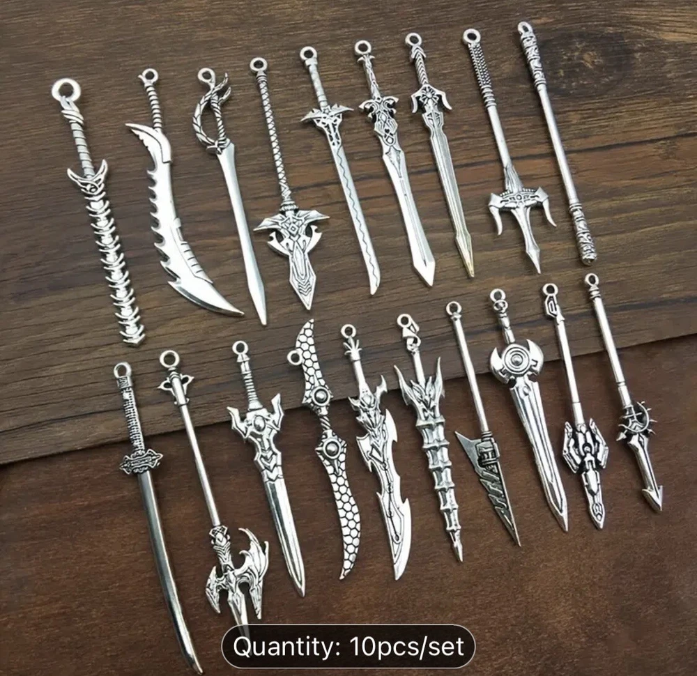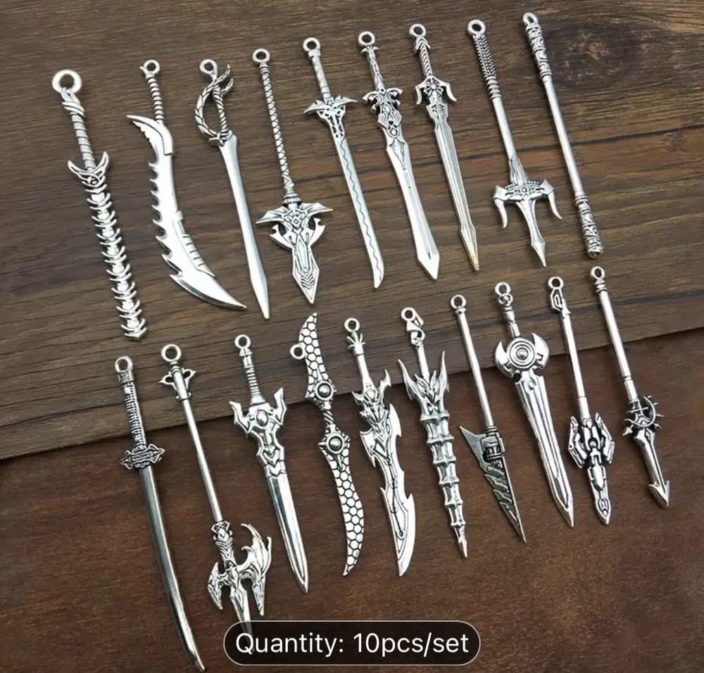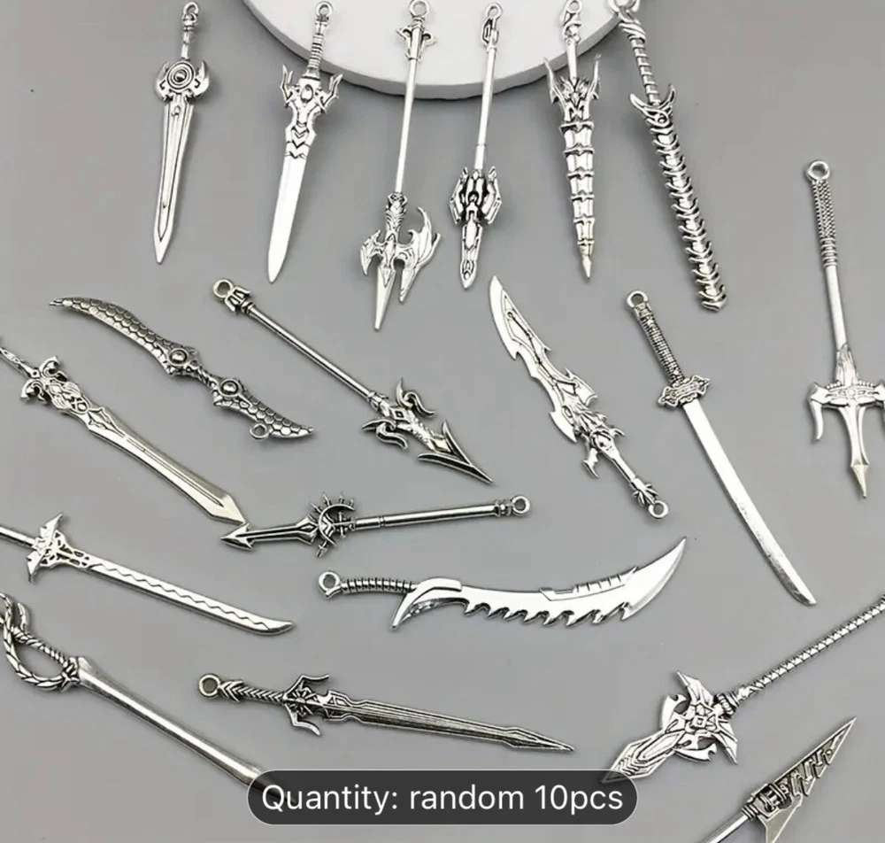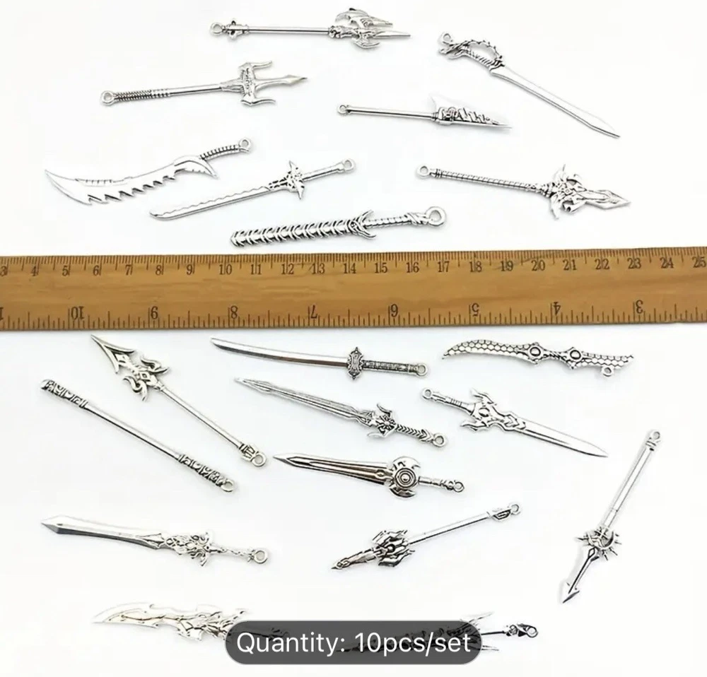 10pcs Lot Dollhouse Miniature Weapons Swords Spears knief Action Figures