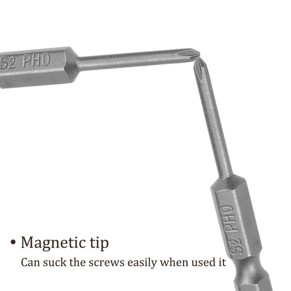 Document APPLICATION- Fit for electric screwdriver, manual screwdriver, power drill and other pneumatic or power tools with 1/4" hex holder. Widely used in cars, trucks, engines, motorcycles, computers, cable boxes and other applications.ABOUT THIS PRODUCT- Made of S2 alloy steel, which is a commonly used material in hardware with high hardness.- Sandblasting surface, corrosion resistance and durability.- Magnetic tip, can suck the screws easily when used it.- Exquisite workmanship, each edge can be accurately locked screws, no damage to the screw, and the screwdriver head.SPECIFICATIONBit Type: PH0Tip Diameter: 2.5mm / 0.16“Shank: 1/4“ Hex ShankLength: 50mm / 2”Material: S2 Alloy SteelFinish: SandblastingPackage: 10 packs of Cross Head Screwdriver BitTAKE NOTICE OF- Do not turn the screws with mismatched size to avoid damage to both the screw and the drill. 10pcs Phillips Screwdriver Bit 2" x H1/4 x 2.5mm x PH0 Magnetic Power Tool APPLICATION - Fit for electric screwdriver, manual screwdriver, power drill and other pneumatic or power tools with 1/4" hex holder. Widely used in cars, trucks, engines, motorcycles, computers, cable boxes and other applications. ABOUT THIS PRODUCT - Made of S2 alloy steel, which is a commonly used material in hardware with high hardness. - Sandblasting surface, corrosion resistance and durability. - Magnetic tip, can suck the screws easily when used it. - Exquisite workmanship, each edge can be accurately locked screws, no damage to the screw, and the screwdriver head. SPECIFICATION Bit Type: PH0 Tip Diameter: 2.5mm / 0.16“ Shank: 1/4“ Hex Shank Length: 50mm / 2” Material: S2 Alloy Steel Finish: Sandblasting Package: 10 packs of Cross Head Screwdriver Bit TAKE NOTICE OF - Do not turn the screws with mismatched size to avoid damage to both the screw and the drill. Hot Item Payment 1.We accept eBay payment . 2.Payment must be received within 7 business days of auction closing. Shipping 1.We ship to your eBay or Paypal address. Please make sure your eBay and Paypal address is correct before you pay. 2.Items will be shipped within 1-3 business day when we received payment. 3.Delivery time depends on destination and other factors. Description Policy 10pcs Phillips Screwdriver Bit 2" x H1/4 x 2.5mm x PH0 Magnetic Power Tool APPLICATION - Fit for electric screwdriver, manual screwdriver, power drill and other pneumatic or power tools with 1/4" hex holder. Widely used in cars, trucks, engines, motorcycles, computers, cable boxes and other applications. ABOUT THIS PRODUCT - Made of S2 alloy steel, which is a commonly used material in hardware with high hardness. - Sandblasting surface, corrosion resistance and durability. - Magnetic tip, can suck the screws easily when used it. - Exquisite workmanship, each edge can be accurately locked screws, no damage to the screw, and the screwdriver head. SPECIFICATION Bit Type: PH0 Tip Diameter: 2.5mm / 0.16“ Shank: 1/4“ Hex Shank Length: 50mm / 2” Material: S2 Alloy Steel Finish: Sandblasting Package: 10 packs of Cross Head Screwdriver Bit TAKE NOTICE OF - Do not turn the screws with mismatched size to avoid damage to both the screw and the drill. Hot Item Payment 1.We accept eBay payment . 2.Payment must be received within 7 business days of auction closing. Shipping 1.We ship to your eBay or Paypal address. Please make sure your eBay and Paypal address is correct before you pay. 2.Items will be shipped within 1-3 business day when we received payment. 3.Delivery time depends on destination and other factors.