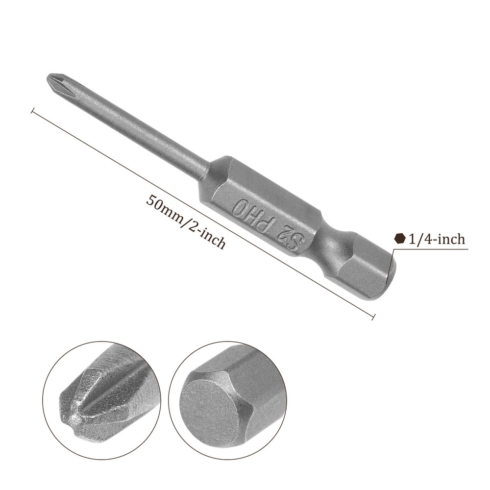 10pcs Magnetic Phillips PH0 Screwdriver Bits 2" x 1/4" Hex for Power Tools