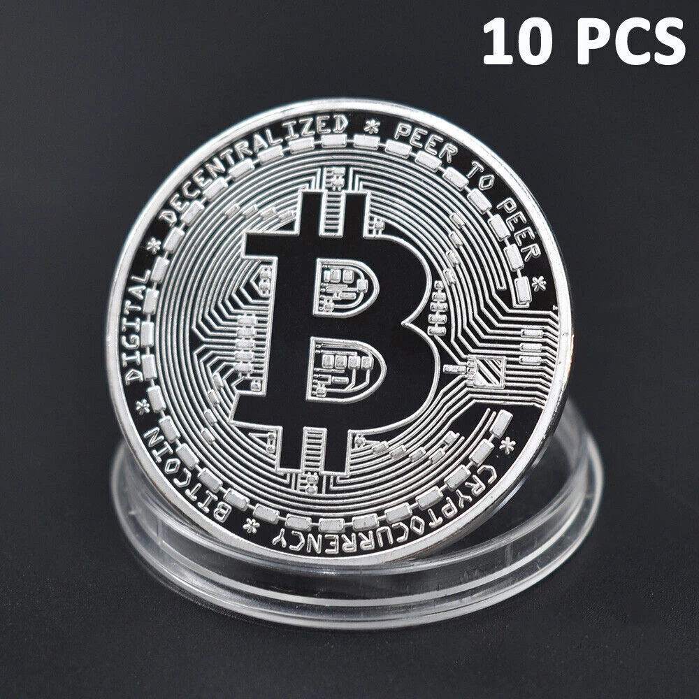 Parts List: 10 pcs Plated Bitcoin Coin Highlight description: 1.100% brand new, high quality 2.Bitcoin design, both sides 3.Souvenir art and collectibles, business gifts, holiday decorations, gifts 4.Very collectible - an excellent gift idea - perfect for anyone with an interest in coin collecting etc. 5.Using high-quality materials, long storage time Detailed description: Material: Alloy Silver-plated coins Diameter: 40mm Thickness: 1.5mm (Due to the manual measurement, there will be an error of 1-3 cm.) Color: Gold,Silver Accessories: Acrylic transparent shell + opp sealed bag