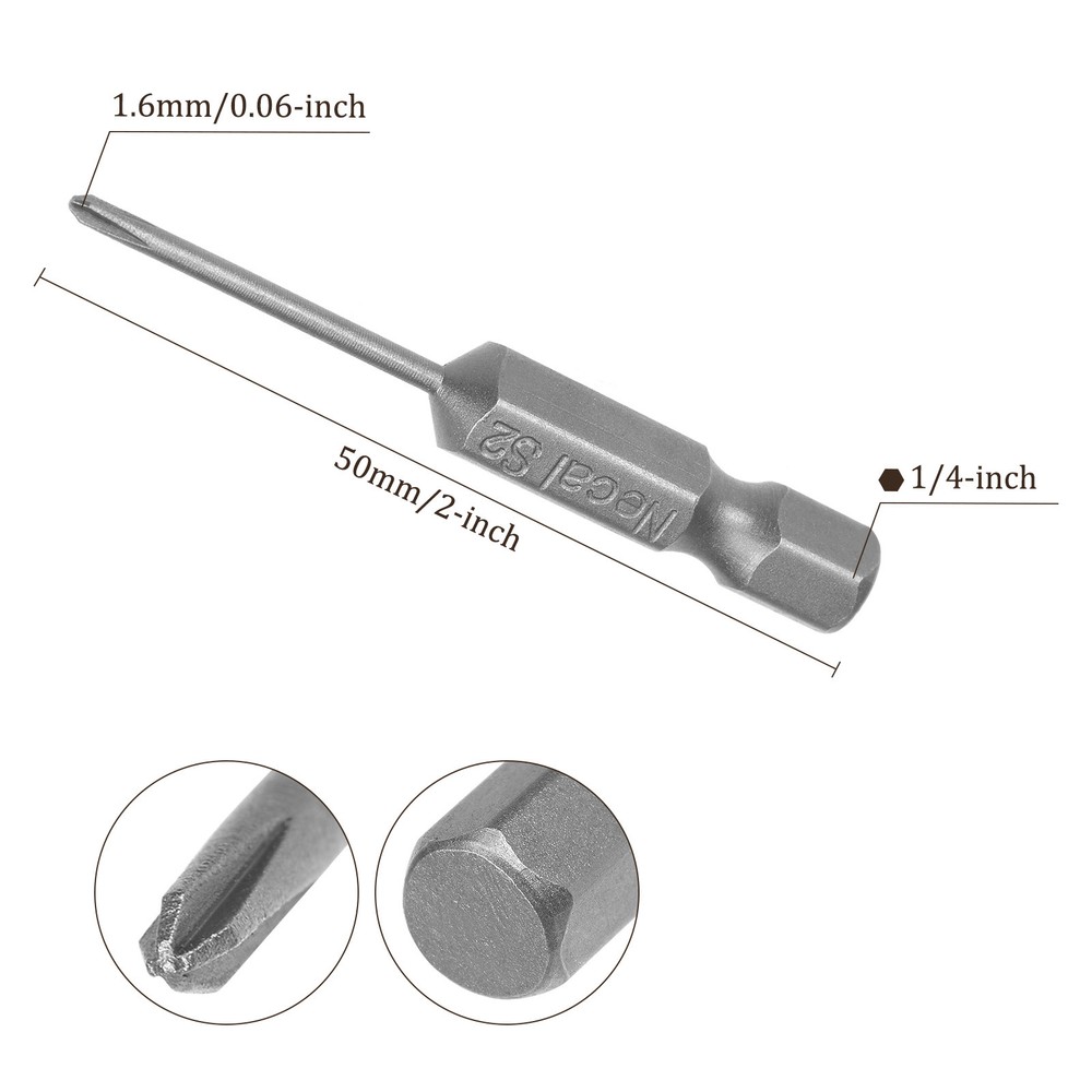 Document APPLICATION- Fit for electric screwdriver, manual screwdriver, power drill and other pneumatic or power tools with 1/4" hex holder. Widely used in cars, trucks, engines, motorcycles, computers, cable boxes and other applications.ABOUT THIS PRODUCT- Made of S2 alloy steel, which is a commonly used material in hardware with high hardness.- Sandblasting surface, corrosion resistance and durability.- Magnetic tip, can suck the screws easily when used it.- Exquisite workmanship, each edge can be accurately locked screws, no damage to the screw, and the screwdriver head.SPECIFICATIONBit Type: PH00Tip Diameter: 1.6mm / 0.06“Shank: 1/4“ Hex ShankLength: 50mm / 2”Material: S2 Alloy SteelFinish: SandblastingPackage: 10 packs of Cross Head Screwdriver BitTAKE NOTICE OF- Do not turn the screws with mismatched size to avoid damage to both the screw and the drill. 10pcs Phillips Screwdriver Bit - [2" x H1/4 x 1.6mm x PH00] Magnetic Power Tool APPLICATION - Fit for electric screwdriver, manual screwdriver, power drill and other pneumatic or power tools with 1/4" hex holder. Widely used in cars, trucks, engines, motorcycles, computers, cable boxes and other applications. ABOUT THIS PRODUCT - Made of S2 alloy steel, which is a commonly used material in hardware with high hardness. - Sandblasting surface, corrosion resistance and durability. - Magnetic tip, can suck the screws easily when used it. - Exquisite workmanship, each edge can be accurately locked screws, no damage to the screw, and the screwdriver head. SPECIFICATION Bit Type: PH00 Tip Diameter: 1.6mm / 0.06“ Shank: 1/4“ Hex Shank Length: 50mm / 2” Material: S2 Alloy Steel Finish: Sandblasting Package: 10 packs of Cross Head Screwdriver Bit TAKE NOTICE OF - Do not turn the screws with mismatched size to avoid damage to both the screw and the drill. Hot Item Payment 1.We accept eBay payment . 2.Payment must be received within 7 business days of auction closing. Shipping 1.We ship to your eBay or Paypal address. Please make sure your eBay and Paypal address is correct before you pay. 2.Items will be shipped within 1-3 business day when we received payment. 3.Delivery time depends on destination and other factors. Description Policy 10pcs Phillips Screwdriver Bit - [2" x H1/4 x 1.6mm x PH00] Magnetic Power Tool APPLICATION - Fit for electric screwdriver, manual screwdriver, power drill and other pneumatic or power tools with 1/4" hex holder. Widely used in cars, trucks, engines, motorcycles, computers, cable boxes and other applications. ABOUT THIS PRODUCT - Made of S2 alloy steel, which is a commonly used material in hardware with high hardness. - Sandblasting surface, corrosion resistance and durability. - Magnetic tip, can suck the screws easily when used it. - Exquisite workmanship, each edge can be accurately locked screws, no damage to the screw, and the screwdriver head. SPECIFICATION Bit Type: PH00 Tip Diameter: 1.6mm / 0.06“ Shank: 1/4“ Hex Shank Length: 50mm / 2” Material: S2 Alloy Steel Finish: Sandblasting Package: 10 packs of Cross Head Screwdriver Bit TAKE NOTICE OF - Do not turn the screws with mismatched size to avoid damage to both the screw and the drill. Hot Item Payment 1.We accept eBay payment . 2.Payment must be received within 7 business days of auction closing. Shipping 1.We ship to your eBay or Paypal address. Please make sure your eBay and Paypal address is correct before you pay. 2.Items will be shipped within 1-3 business day when we received payment. 3.Delivery time depends on destination and other factors.