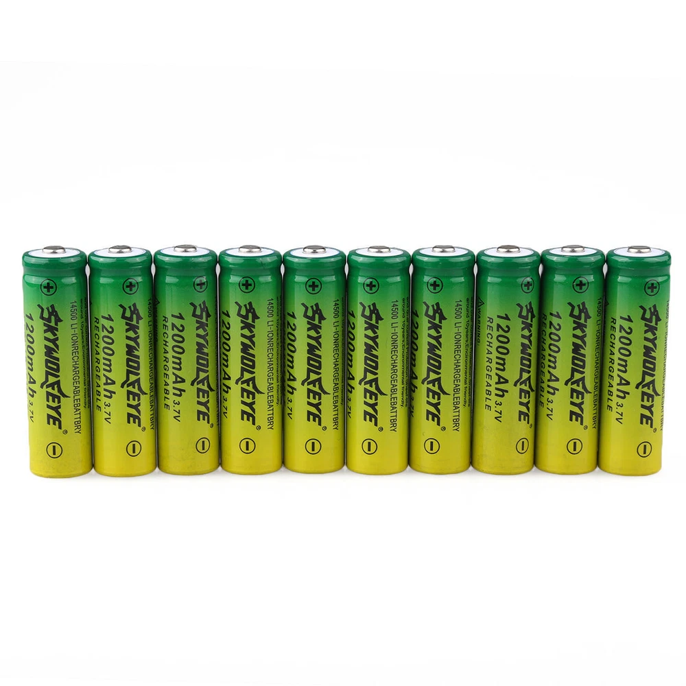 10pcs SkyWolfEye 14500 Battery 3.7V 1200mAh Rechargeable Batteries Cell USA