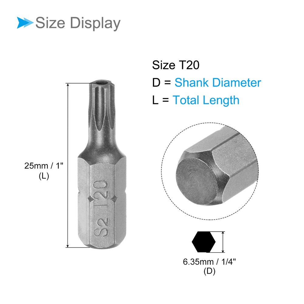 Document Attributes:* Shank Size: 1/4"* Total Length: 25mm / 1"* Bit Type: T20 * Material: S2 SteelWhat Is Included:* 10 Piece x Torx Screwdriver BitApplications & Features:--- Those bits fit for electric screwdrivers, hand screwdrivers, electric drills, air drills, air batches and 1/4" screwdriver sets.--- The torx screwdriver bits are made of S2 steel, which ensures high hardness, durability and wear resistance.--- These screwdriver bits are magnetic, which can firmly absorb the screw to prevent it from falling off.--- The star head bits are easy to install on the screwdriver handle with double ear on the sides of the bit shank.Useful Tips:--- Please apply appropriate force. Excessive force may cause the bit to slip, while insufficient force may not effectively tighten or remove the screw. 10pcs Torx Screwdriver Bits 1/4" Hex Shank 25mm T20 Magnetic Screwdrivers Bit Attributes: * Shank Size: 1/4" * Total Length: 25mm / 1" * Bit Type: T20 * Material: S2 Steel What Is Included: * 10 Piece x Torx Screwdriver Bit Applications & Features: --- Those bits fit for electric screwdrivers, hand screwdrivers, electric drills, air drills, air batches and 1/4" screwdriver sets. --- The torx screwdriver bits are made of S2 steel, which ensures high hardness, durability and wear resistance. --- These screwdriver bits are magnetic, which can firmly absorb the screw to prevent it from falling off. --- The star head bits are easy to install on the screwdriver handle with double ear on the sides of the bit shank. Useful Tips: --- Please apply appropriate force. Excessive force may cause the bit to slip, while insufficient force may not effectively tighten or remove the screw. Hot Item Payment 1.We accept eBay payment . 2.Payment must be received within 7 business days of auction closing. Shipping 1.We ship to your eBay or Paypal address. Please make sure your eBay and Paypal address is correct before you pay. 2.Items will be shipped within 1-3 business day when we received payment. 3.Delivery time depends on destination and other factors. Description Policy 10pcs Torx Screwdriver Bits 1/4" Hex Shank 25mm T20 Magnetic Screwdrivers Bit Attributes: * Shank Size: 1/4" * Total Length: 25mm / 1" * Bit Type: T20 * Material: S2 Steel What Is Included: * 10 Piece x Torx Screwdriver Bit Applications & Features: --- Those bits fit for electric screwdrivers, hand screwdrivers, electric drills, air drills, air batches and 1/4" screwdriver sets. --- The torx screwdriver bits are made of S2 steel, which ensures high hardness, durability and wear resistance. --- These screwdriver bits are magnetic, which can firmly absorb the screw to prevent it from falling off. --- The star head bits are easy to install on the screwdriver handle with double ear on the sides of the bit shank. Useful Tips: --- Please apply appropriate force. Excessive force may cause the bit to slip, while insufficient force may not effectively tighten or remove the screw. Hot Item Payment 1.We accept eBay payment . 2.Payment must be received within 7 business days of auction closing. Shipping 1.We ship to your eBay or Paypal address. Please make sure your eBay and Paypal address is correct before you pay. 2.Items will be shipped within 1-3 business day when we received payment. 3.Delivery time depends on destination and other factors.