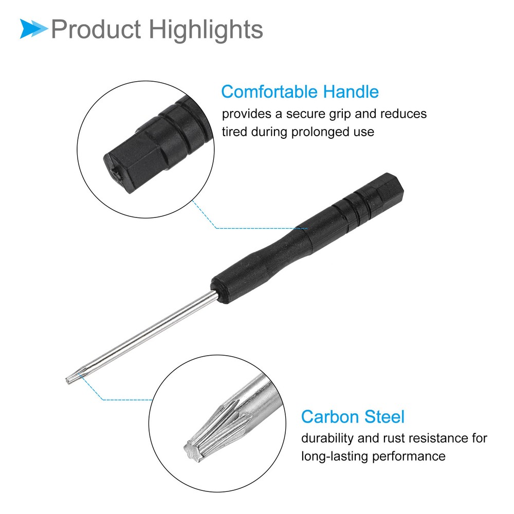 Document Attributes:* Size: T6* Total Length: 80mm / 3.15-inch* Shaft Material: Carbon SteelWhat Is Included:* 10 Pieces x Micro ScrewdriversApplications & Features:--- This screwdriver is a multifunctional tool suitable for a variety of electronic devices and appliances and can be used on laptops, computers, game consoles, pocket knives, doorbells, dishwashers, routers, and more.--- The screwdriver features a comfortable handle that provides a secure grip and reduces tired during prolonged use--- The screwdriver is made from carbon steel material ensuring strength, durability and rust resistance for long-lasting performance.Useful Tips:--- Please confirm the screwdriver size before buying. 10pcsSmall Torx Screwdriver T6 80mm 6 Point Screwdriver W Anti-slip Handle Attributes: * Size: T6 * Total Length: 80mm / 3.15-inch * Shaft Material: Carbon Steel What Is Included: * 10 Pieces x Micro Screwdrivers Applications & Features: --- This screwdriver is a multifunctional tool suitable for a variety of electronic devices and appliances and can be used on laptops, computers, game consoles, pocket knives, doorbells, dishwashers, routers, and more. --- The screwdriver features a comfortable handle that provides a secure grip and reduces tired during prolonged use --- The screwdriver is made from carbon steel material ensuring strength, durability and rust resistance for long-lasting performance. Useful Tips: --- Please confirm the screwdriver size before buying. Hot Item Payment 1.We accept eBay payment . 2.Payment must be received within 7 business days of auction closing. Shipping 1.We ship to your eBay or Paypal address. Please make sure your eBay and Paypal address is correct before you pay. 2.Items will be shipped within 1-3 business day when we received payment. 3.Delivery time depends on destination and other factors. Description Policy 10pcsSmall Torx Screwdriver T6 80mm 6 Point Screwdriver W Anti-slip Handle Attributes: * Size: T6 * Total Length: 80mm / 3.15-inch * Shaft Material: Carbon Steel What Is Included: * 10 Pieces x Micro Screwdrivers Applications & Features: --- This screwdriver is a multifunctional tool suitable for a variety of electronic devices and appliances and can be used on laptops, computers, game consoles, pocket knives, doorbells, dishwashers, routers, and more. --- The screwdriver features a comfortable handle that provides a secure grip and reduces tired during prolonged use --- The screwdriver is made from carbon steel material ensuring strength, durability and rust resistance for long-lasting performance. Useful Tips: --- Please confirm the screwdriver size before buying. Hot Item Payment 1.We accept eBay payment . 2.Payment must be received within 7 business days of auction closing. Shipping 1.We ship to your eBay or Paypal address. Please make sure your eBay and Paypal address is correct before you pay. 2.Items will be shipped within 1-3 business day when we received payment. 3.Delivery time depends on destination and other factors.