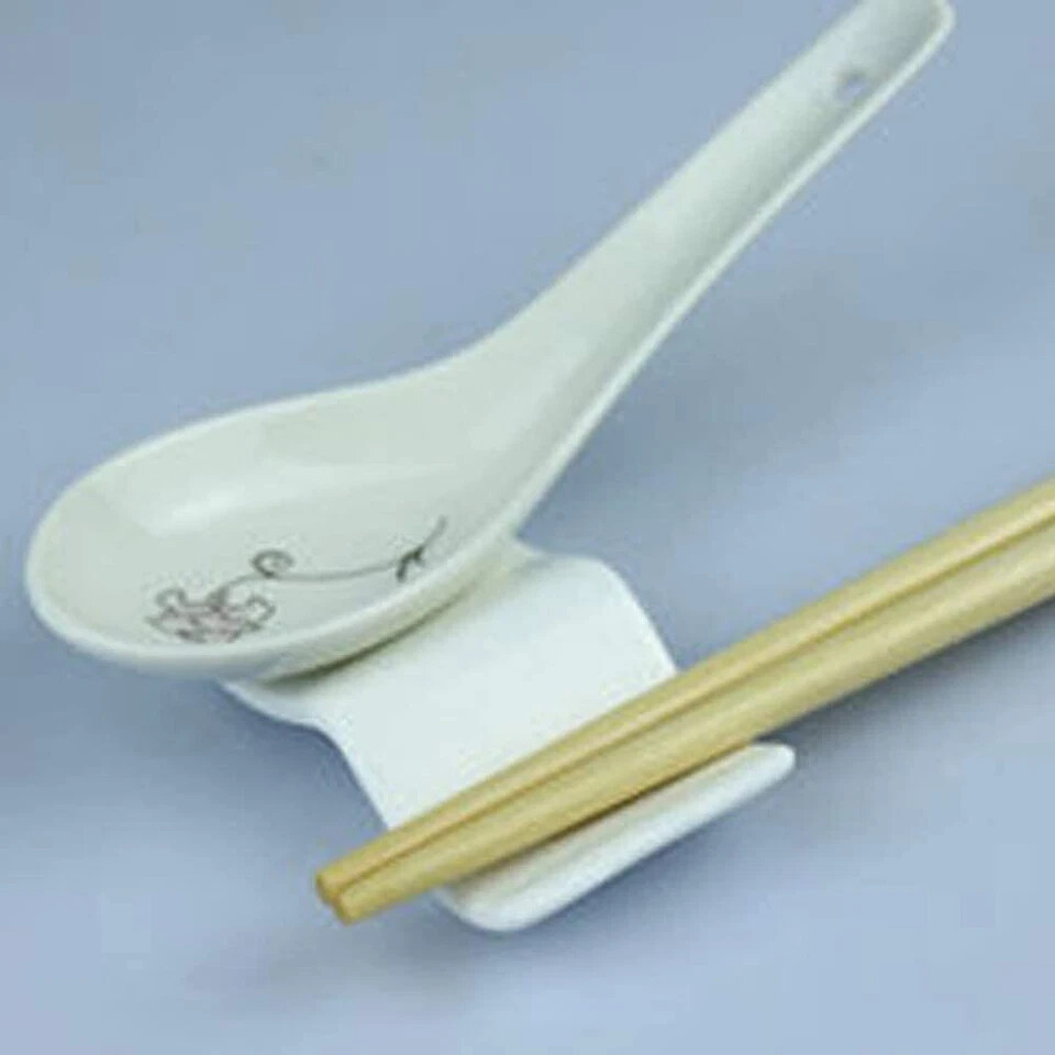 10pcs White Porcelain Ceramic Chopsticks Spoon Fork Rest Set
