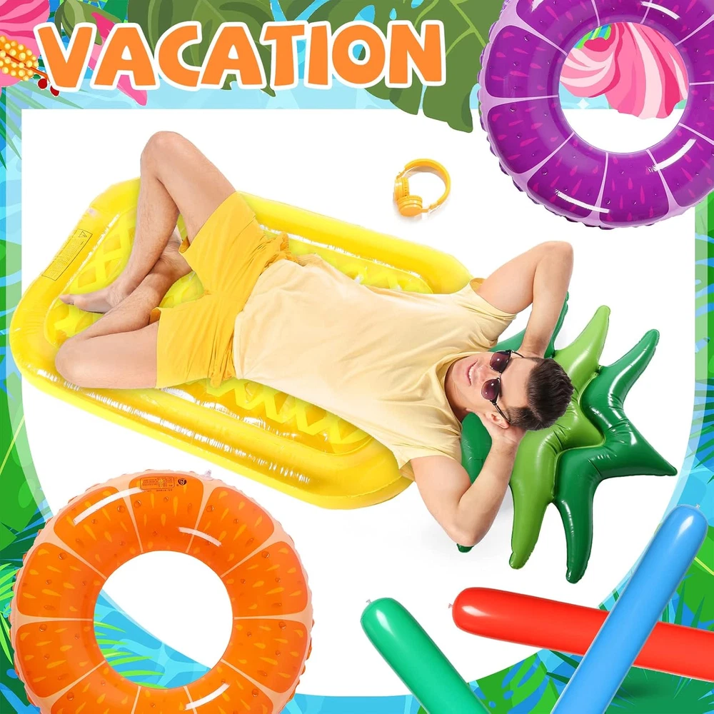 10 Pcs Inflatable Pool Floats Include 3 Swim Tubes Rings 6 Large Inflatable Pool Noodles and Pineapple Pool Raft Floats for Swimming Pool Beach Party Summer Vacation Birthday Party Decor Pool Float: you will receive 6 pieces of pool inflatable sticks, 1 piece of pineapple pool raft and 3 pieces of pool tubes, 10 pieces in total, with various fruits designs; Sufficient quantity and designs to meet your different demands, and you can share them with friend and family member Size Information: the pineapple pool raft measures about 72.8 x 32.7 x 6.3 inch, and the outer diameter of the ring pool float is about 31.5 inch, each inflatable pool noodle is approx. 35.4 x 5.9 inch, proper for both teens and adults Quality Material: the beach floats are easy to inflate and deflate, made of quality PVC material, reliable and safe, can hold up to 300 pounds, won't tear or leak easily, they are foldable and easy to store after deflation; Note: just ventilate them after receiving for 1-2 days, the smell will disappear Summer Themed Elements: the pool float is designed with interesting fruits patterns, like pineapple, kiwi, grape and orange, with bright and vivid colors, eye catching and delicate, which attract people attentions Nice Party Additions: the pool toys floats are suitable for birthday party, beach party, wedding, Hawaii themed party, summer vacation, pool party, graduation, luau party, bachelorette and more, not only as swimming tools, but also as party decorations, adding festive atmosphere Features: The inflatable pool float adopts summer fruits elements, fresh and vibrant, suitable for birthday party, beach party, wedding, Hawaii themed party, summer vacation, pool party, graduation, luau party, bachelorette, etc. The beach float can be applied as a delicate gift for friend, family member, colleague, neighbor and more, can be applied for beach, swimming pool, lake and more. Specifications: Material: quality PVC Color: as shown in pictures Size: Sticks: about 35.4 x 5.9 inch Raft: about 72.8 x 32.7 x 6.3 inch Ring: about 31.5 inch in outer diameter Package includes: 6 x Pool inflatable sticks 1 x Pineapple pool raft 3 x Pool tubes Notes: Manual measurement, please allow slight errors on size. The color may exist a slight difference due to different screen displays. Please avoid pointed stones. Item Weight 4.53 pounds Manufacturer recommended age 12 years and up Country of Origin China Package Dimensions 7.56 x 7.4 x 7.24 inches 7.4 inches x 7.56 inches x 7.24 inches. Weight: 4.53 lb Shipping from the USA All of our products are shipped from the USA, ensuring quick delivery to your destination. Payment We offer the following payment methods: PayPal, credit card, bank transfer, and eBay's secure payment system. Free Shipping & Free Returns Shipping within the USA is FREE. Additionally, any return is absolutely free for you. Risk-Free Purchase You have the option to return an item within 30 days without any justification. We cover the return shipping costs! Fast Shipping We ship immediately upon receipt of payment. Generally, the package is delivered within 2-3 days in the USA. If it takes longer, we will contact you. Quality and Costs Made in Europe, USA, China No customs fees or additional charges Total satisfaction guarantee Invoice with declared VAT available upon request in .pdf format Feedback Your feedback is very important to us. After you pay for your purchase, you will automatically receive positive feedback from us.