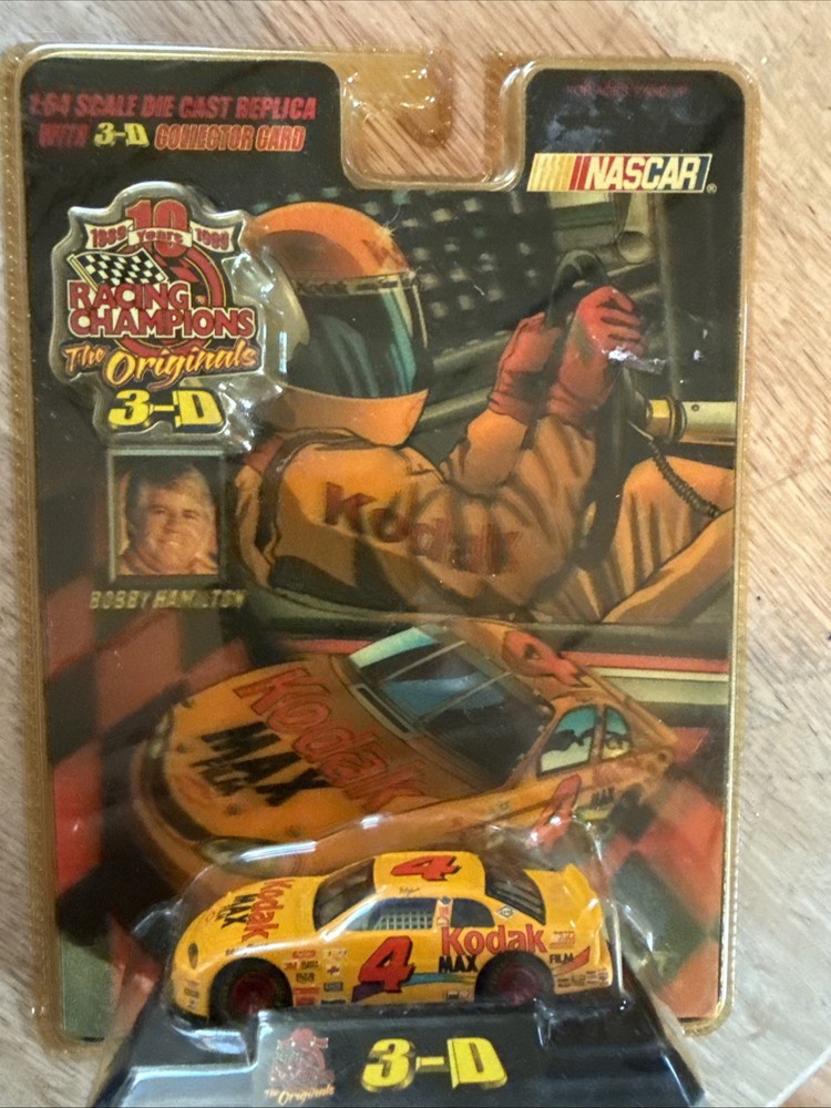 The product is a 10 Year Anniversary Racing Champions diecast NASCAR racecar featuring driver Bobby Hamilton. This 1:64 scale model is made in China and part of "The Originals 3D" collection. It is a collectible piece for fans of racing and diecast vehicles. The racing champions brand ensures high quality and detail in this commemorative toy vehicle that celebrates the iconic driver and his connection to the sport of NASCAR.
