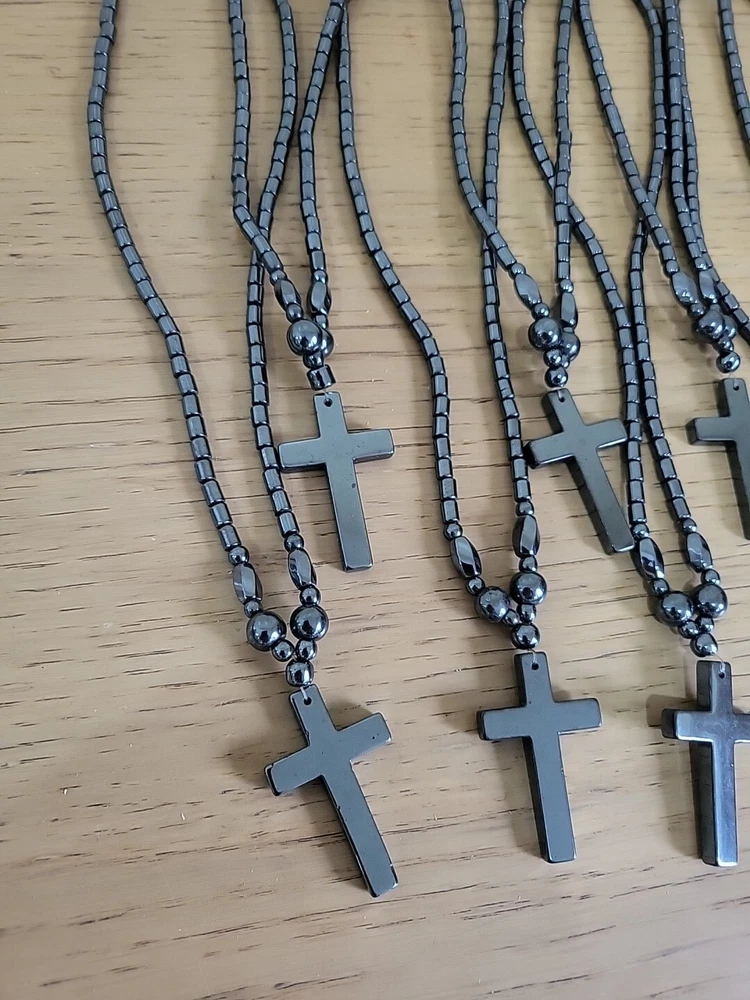 10x 17inch Hematite Necklace With Cross Pendant. Clearance Sale