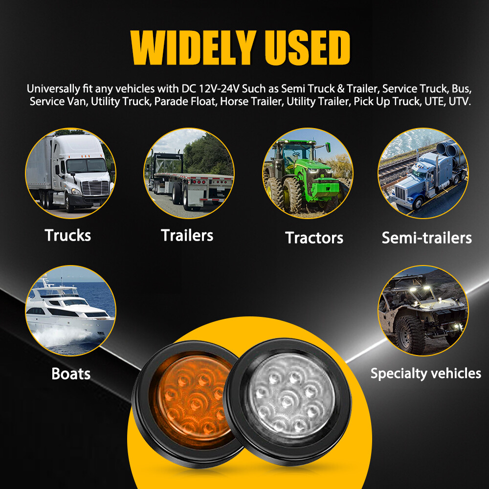 Fit for: Universally fit any vehicles with DC 12V-24V such as Semi Truck & Trailer, Service Truck, Bus, Service Van, Utility Truck, Parade Float, Horse Trailer, Utility Trailer, Pick Up Truck, UTE, UTV. Specifications: Product Material: ABS+PC Suitable Voltage: 12-24V Lens Color: White, Yellow Light Color: White, Yellow Wiring Connections: White Wire: Negative Black Wire: Positive Connector Type: Pigtail Mounting Type: Flush-Mount Waterproof Rate: IP67 Lifespan: 50,000h+ Features: *High Brightness Each LED light bright enough and energy-saving. *Superior Quality 10x 2" 9-LED Trailer Truck Stop Turn Tail Brake Lights Waterproof White&Yellow Fit for: Universally fit any vehicles with DC 12V-24V such as Semi Truck & Trailer, Service Truck, Bus, Service Van, Utility Truck, Parade Float, Horse Trailer, Utility Trailer, Pick Up Truck, UTE, UTV. Specifications: Product Material: ABS+PC Suitable Voltage: 12-24V Lens Color: White, Yellow Light Color: White, Yellow Wiring Connections: White Wire: Negative Black Wire: Positive Connector Type: Pigtail Mounting Type: Flush-Mount Waterproof Rate: IP67 Lifespan: 50,000h+ Features: *High Brightness Each LED light bright enough and energy-saving. *Superior Quality Made of high quality material to ensure its low energy consumption, good waterproof and shock resistance. *Waterproof The light has IP67 waterproof rate, which works even under extreme conditions such as rain and snow. *Wide Application This LED light can be used in any vehicle with DC 12V-24V, such as a Semi Truck and trailer, Service Truck, Bus, Service Van, Utility Truck, Parade Float, Horse Trailer, Utility Trailer, Pickup Truck, UTE, or UTV. *Warm Notice Please check the detail information of the product carefully before purchasing. Packaging Include: 10 x 2" Round 9 LED Clearance Side Marker Light 10 x 2.8" Round Black Grommet 10 x 2-Pin 90° Plugs connector Item Specifics Brand AUXITO Manufacturer Part Number WD-R-2IN-5R*1 WD-R-2IN-5W*1 Manufacturer Warranty 1 Year Voltage 12-24V Connector Type Pigtail Lens Cover Color Red ,yellow Material ABS PC Mounting Type Flush-Mount Light Color Red Mounting Hardware Grommet Placement on Vehicle Front, Rear, Left, Right Features Waterproof, Sealed Assembly, Easy Installation Number of LEDs 9 IP Rating IP67 Lens Color Red white Payment 1. Instant PayPal payment is the preferred method of payment. We also accept payment via PayPal, DebitCard, Visa, MasterCard, Discover. 2. Before payment,Please keep the consistency of Paypal address and ebay address. 3. Quantity orders are welcome! Shipping 1. All items will be shipped in 24 hours after receiving your payment . 2. We ship this item to US only via USPS first class mail. It usually takes 3-6 working days to deliver. Returns 1. We offer free return & money back guarantee. If you are not satisfied with your purchase for any reasons, you can return the item for refund or replacement/exchange. All returns must include the original packaging. (Please refer to our return policy for details.) 2. If you don't return goods within 60 days from date of purchase, your right to cancel will be revoked. Any items damaged because of incorrect installation will not be refunded. Please contact us for return or troubleshooting help prior to returning any products. Contact Us 1. Negative feedback will not help resolve any problems you have, please contact us via eBay messages before leaving negative feedback, our customer service will make best effort to help you with the issues. 2. We maintain high standards of excellenceand strive for 100% customer satisfaction! Feedback is very important to us. We request that you contact us immediately Before you give us neutral or negative feedback, so that we can satisfactorily address your concerns. FAQ 1. Can you tell me when my order will be shipped? Actually we will ship the item within 1 business day after receiving orders. But USPS need to take longer time to update tracking info and arrange delivery during the challenging time for now. If your order was not shipped more than 3 business days, please contact us with your order number to get quick support. 2. My item has not arrived, what's taking so long? Sometimes items take longer than expected, especially if it's going far or to rural area. Check with your post office to see if your item has been held up. Sometimes USPS will not update a tracking number until it has arrived at its destination. If your item still has not arrived after a few days, let us know so we can double check for you and help solve it asap. 3. Do you ship to Canada, United Kingdom, Australia, etc.? Unfortunately, we could only ship to United States (Domestic shipment) at the moment. 4. I bought the wrong items/ the items were not compatible with my vehicle. Please contact us via ebay message to get quick support. DESCRIPTION PAYMENT SHIPPING RETURN POLICY CONTACT US Hot Item Fog Lamp Reflector For Toyota RAV4 2013-2015 Passenger Right Rear Bumper Light USD 19.99 Smoked Black LED 3RD Third Brake Light Cargo Lamp Sealed For Ford 1993-11 Ranger USD 23.74 Right Passenger Rear Bumper Light Fog Lamp Reflector For Toyota RAV4 2013 14 15 USD 19.99 Rear Bumper Reflector fog Light Lamp Left For Lexus 2004-2009 RX330 RX400H RX350 USD 24.99 LED 3rd Brake Light Tail Lamp For Ford 2009 2010 2011 2012 2013 2014 F150 Pickup USD 30.99 New List Item Rear Bumper Reflector Light Tail Case Left&Right for 2007-2014 Toyota FJ Cruiser USD 18.99 10pcs LED Rock Lights Car UTV Underglow RGB Multicolor Neon Light Kits for Truck USD 42.09 Wire Pigtail Female 9008 H13 Two Harness Head Light Bulb Socket Connector Plug USD 10.99 Black Third Brake Light Lamp Trim Cover LH & RH Pair for 2018-2020 Ford Transit USD 16.99 3rd Third High Brake Light Lamp Cover Trim Accessories for 2018-20 Ford Transit USD 16.99 Excellent Delivery 10x 2" 9-LED Trailer Truck Stop Turn Tail Brake Lights Waterproof White&Yellow Fit for: Universally fit any vehicles with DC 12V-24V such as Semi Truck & Trailer, Se