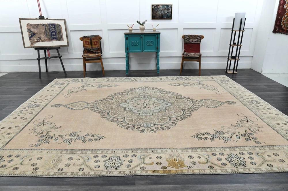 POZLU Rugs presents 9.5 x12.2 Ft Turkish Area Rug, Oushak Area Rug, Vintage Area Rug, 10x12 Area Rug . The exclusive hand-knotted vintage rug is made of very fine quality hand-spun wool on a cotton foundation. The timeless one-of-a-kind design has been given a very versatile to effortlessly accompany nearly any decor style. These designs and colors made them favorites of interior designers. Product Details For the US buyers 9.5 x12.2 feet For EU & International buyers 289 x372 cm The item number is 59765 Experince Details The refund guarantee in case of any dissatisfaction. The worldwide expedited delivery 4-5 business days via UPS or FedEx. All the items are carefully checked before the packing. Personalised gift messages and wrapping available on request. Please feel free to inquire about making your custom dream rug! If you have any additional questions or require further information, please, do not hesitate to contact us. POZLU Rugs: https://www.ebay.com/str/pozlurugs