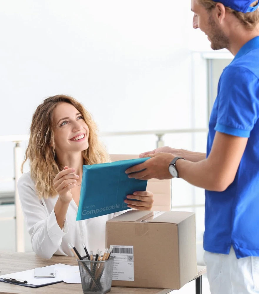 KTOB Blue Compostable Poly Mailers with Adhesive Self-Sealing Strip Eco Friendly Envelopes Supplies or Mailing bags for Clothing Quantity: 50 Pieces Additional Details: Self-sealing, peel and stick, adhesive keeps contents secure and tamper proof Extremely lightweight material helps save on postage High strength seams for maximum protection 100% BIODEGRADABLE - Made of PBAT and modified corn starch in accordance with the standards of ASTM 6400, EN13432, BPI and OK COMPOST HOME. This material is BPA-free, non-microplastic and represents a 60% reduction in CO2 emissions compared to traditional plastics. LEAVE A LASTING IMPRESSION - Your customers will be surprised and relieved to open shipping bags made of plant based eco materials. Using biodegradable shipping supplies will speak volumes about your sense of social responsibility and the high grade of your brand, and bring you closer to your customers through a good corporate image. This small sustainable effort will bring your brand to the forefront. STRONG & DURABLE - These biodegradable shipping envelopes are resistant to moisture, water, punctures, and stretching. The adhesive strip is very strong, and the only way to open the packaging envelope is by cutting or destroying them. You can be sure that your parcels will reach your customers in the same state they left you - intact and looking awesome. CONVENIENT & ECONOMICAL - Simply peel and fold over to seal each package safely and securely. Compared to shipping boxes, this is an affordable (lightweight) and efficient (no tape required) alternative that makes your products feel more branded and like an exciting package you'd want to receive. Featuring a black inner lining, these fully opaque mailing bags help to respect the privacy of your customers. PERFECT FOR YOUR BUSINESS - Our 2.5 mil compostable poly mailers are unpadded and perfect for sending out non-fragile items such as clothing, shoes, and knitwear. These shirt poly bags will protect your online business from water damage and other superficial blemishes, and your customers will smile when they see them.