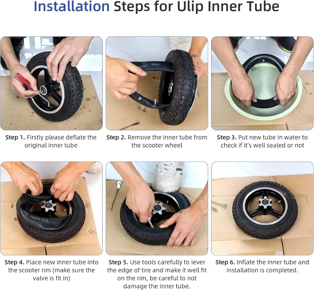 The ulip inner tube is made of high-quality butyl rubber, which has good thermal stability and air tightness, and is durable. The straight valve design of the ulip inner tube makes it easier for you to inflate the tire. Suitable for a wide range of models, suitable for Ninebot F30 F20 F25 F40 scooters for 10 inch Scooter on the market. Installation is simple, 2 crowbars can help install the inner tube during installation. ulip is committed to providing buyers with quality services.