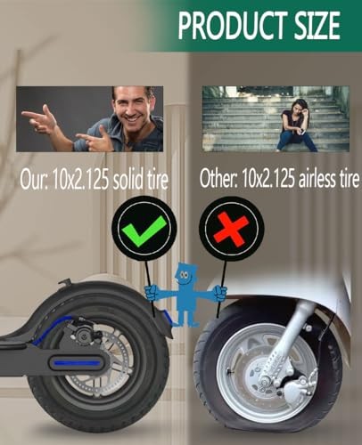 10X2.125 Solid Tire: 10x2/54-152 Tubeless Tyre 10 inches, black 1pcs Product Details Size: 10 inches Brand: GLDYTIMES Wheel Size: 9.25 Inches Pitch Circle Diameter: 30 Millimeters Item Diameter: 10 Inches Vehicle Service Type: Bicycle Load Index: 70 Rim Width: 1.57 Inches Color: black 1pcs Manufacturer: GLDYTIMES Model: 10 inch offroad tire Item Weight: 2.2 pounds Country of Origin: China Is Discontinued By Manufacturer: No Manufacturer Part Number: GLDYTIMES Section Width: 2.13 Inches Aspect Ratio: 75 Bolt Pattern (Number of Holes): 5 Size: 10 inches Brand: GLDYTIMES Wheel Size: 9.25 Inches Pitch Circle Diameter: 30 Millimeters Item Diameter: 10 Inches Vehicle Service Type: Bicycle Load Index: 70 Rim Width: 1.57 Inches Color: black 1pcs Manufacturer: GLDYTIMES MaterialWheel Backspacing: Rubber10 Inches Rim SizeItem Weight: 6.1 Inches1 Kilograms Applicable Model: 10 inch10x2.0 scooter solid tire is suitable for Xiaomi M365/Pro Ninebot F20/F25/F30/F40/F65 Gotrax XR Gotrax GXL V2 Hiboy S2 /S2R Plus Hover-1 Journey AOVOPRO ES80 etc. Electric Scooter. Offroad tires: 10x2.0 inches are more flexible and durable than regular tires. It is an excellent off-road tire suitable for short distance camping trips in the wilderness. Our solid tire can stretch, but it always returns to its original shape. The anti slip groove on the outer side of the tire is deeper, preventing the tire from slipping and improving safety. How to choose: If your original Kick scooter tire is 10x2.125,50/70-6.1, you can order it. Our tire parameters are as follows: Tire Diameter: 235mm, Tire Inner Diameter: 150mm, Tire Groove Width: 37mm, Rim Size: 6.1 inch, RIM groove width: 34mm, Rim Width: 40mm. Please measure your original tire size first. Wear and explosion proof: 10x2.0 solid rubber tires 10x2/54-152 are made of high-quality solid rubber. The tires have characteristics such as anti puncture, wear resistance, anti slip, and explosion-proof, making them durable and durable. Solid tires are safe in any season or weather conditions. 10 inch solid tire treadmill wheels are suitable for various road conditions. Installation Tips: Any solid tire installation is challenging. Before installation, place the tire in 100 degree hot water for more than 15 minutes to soften the tire for better ductility and easier installation. Please note: 10x2.125 and 10x2.0 are the same size, just that different manufacturers use different names for them, but 10x2.125 and 10x2.0 can be used interchangeably.