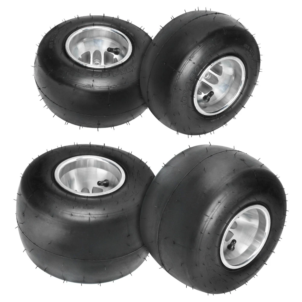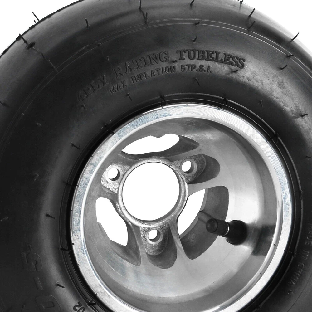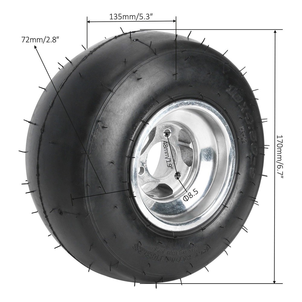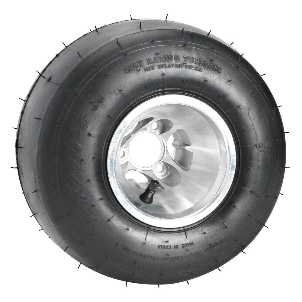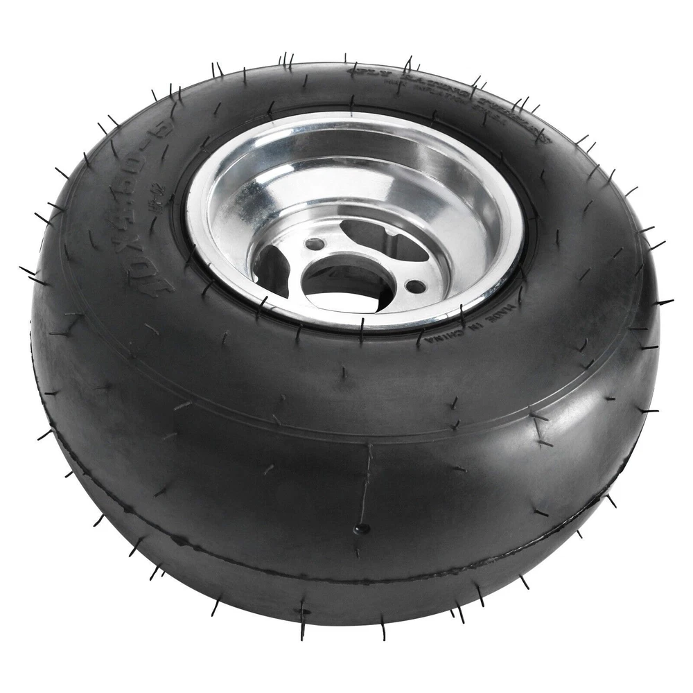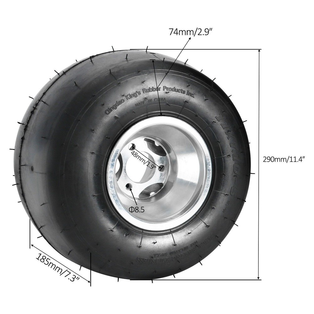 Brand New Tubeless Slick Go Kart Wheel Tyre And Rim Slick pattern reduce resistance and greatly increase riding speed. 3 Stud Rim & Tire ,Will Fit Most Go Kart Size :10x4.50 -5 11X7.10-5 Listing and template services provided by inkFrog