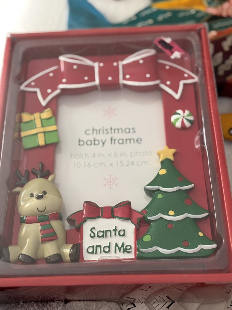 The product is a 3D Picture Frame featuring a festive Santa and bear design, with a tree theme. It is made of multicolor resin and can hold a 10" x 8" photo. The frame adds a fun and colorful touch to any home decor. *Boxed in original box, ready for gifting. * this is not a toy , decorative only! Returns accepted within 30 days; buyer pays return shipping.
