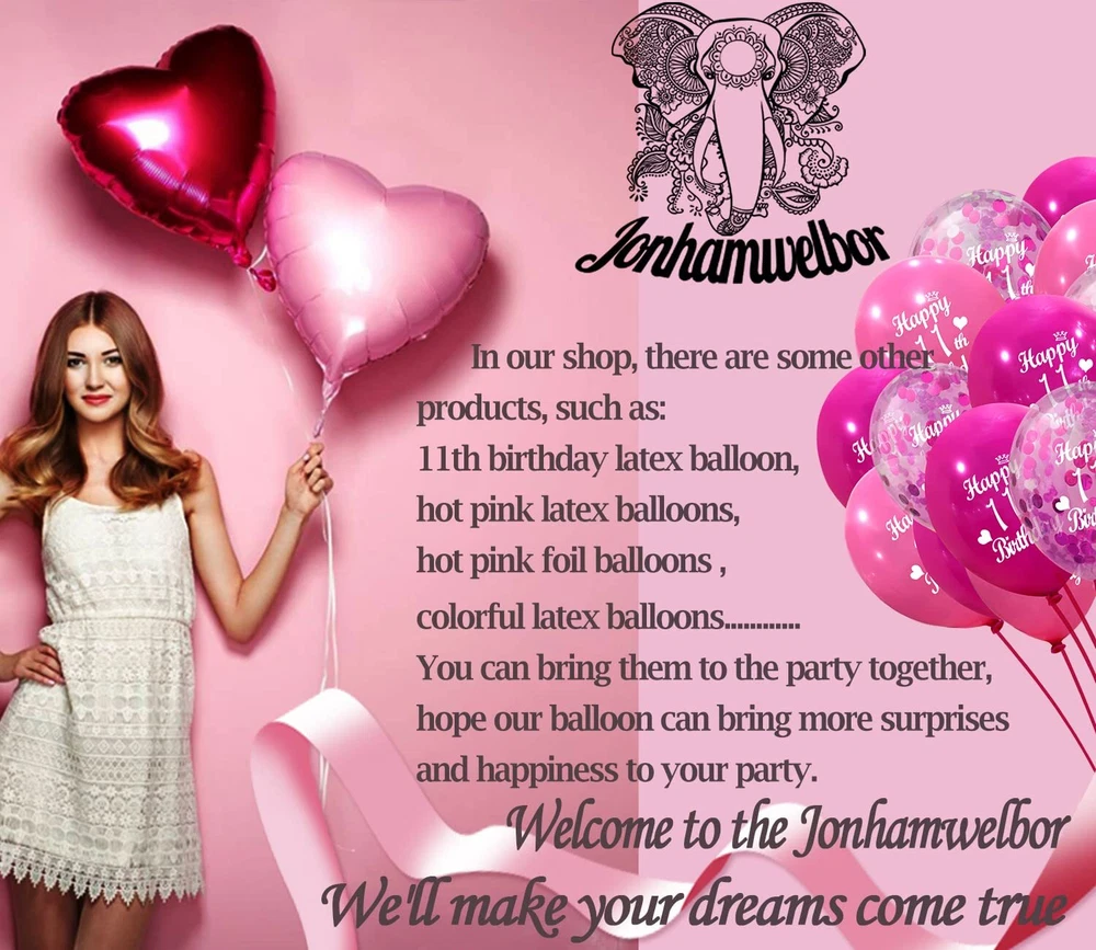 11 Balloon Number Hot Pink Jumbo Giant Big Large Number 11 Foil Mylar Balloons Sweet 11th Birthday Party Anniversary Decorations Supplies for Girl Balloon 40 Inch Hot Pink Number 11 Mylar foil balloons are suitable for girl’s and boy’s 11th birthday parties, sweet 11th birthday parties, 11th wedding anniversary celebrations and graduation decoration. 2 pieces of 40-inch Dark Pink number balloons: number 1 Dark Pink number balloons + 1 Dark Pink number balloons + 1 straw. the Dark Pink number balloon is made of high-quality aluminum film. Please use the straw in the balloon set to inflate slowly. Please avoid filling more than 90% of air or helium. If it is over-inflated, it is easy to cause the balloon to explode at high temperatures. If you are not satisfied with the balloon, please contact us for a full refund or free replacement. Special reminder: Our Dark Pink digital balloons are very high-quality, can be used repeatedly, suitable for many kinds of parties, and very popular. WIDELY APPLICATION: Hot pink number 11 balloons are very suitable for sweet girl boy 11th birthday party and 11 anniversary party decoration. Suitable for graduation anniversary celebration decoration. MATERIAL: Hot pink 11 number Mylar balloon, made of high-quality Mylar.Please use the straw in the balloon set to inflate it slowly.You can reused the foil balloons. PACKAGE&SIZE: 2 Pieces 40 Inch Hot Pink number balloons:No.1 Hot Pink number balloon + No.1 Hot Pink number balloon + 1 straw. ABOUT USE:Please avoid filling more than 90% of air or helium.If it is over-inflated,It can easily cause the balloon to explode at high temperatures. 100% GUARANTEED SATISFACTION: If you are not satisfied with the balloon,just contact us we promise to give you a satisfactory answer .Buy now and you will have happy party. Shipping from the USA All of our products are shipped from the USA, ensuring quick delivery to your destination. Payment We offer the following payment methods: PayPal, credit card, bank transfer, and eBay's secure payment system. Free Shipping & Free Returns Shipping within the USA is FREE. Additionally, any return is absolutely free for you. Risk-Free Purchase You have the option to return an item within 30 days without any justification. We cover the return shipping costs! Fast Shipping We ship immediately upon receipt of payment. Generally, the package is delivered within 2-3 days in the USA. If it takes longer, we will contact you. Quality and Costs Made in Europe, USA, China No customs fees or additional charges Total satisfaction guarantee Invoice with declared VAT available upon request in .pdf format Feedback Your feedback is very important to us. After you pay for your purchase, you will automatically receive positive feedback from us.