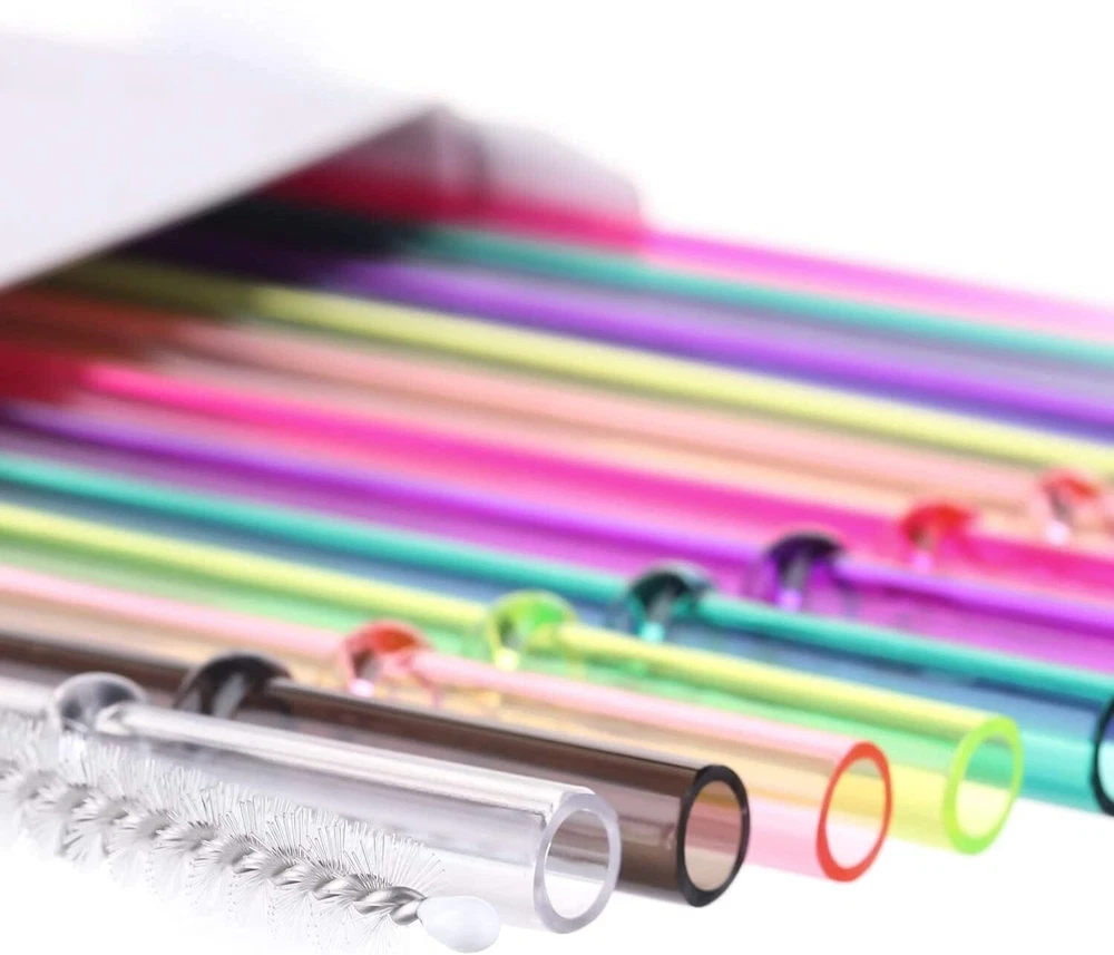 11 Inch Clear Reusable Plastic Drinking Straws Extra Long for 24oz & 40oz Mason Jar Tumblers,Set of 12 Pcs Straws with Cleaning Brush 11inch,7color Size:11"length x "wide ,2mm thicker than others,unbreakable and durable. Material:Made of food grade hard thick Tritan plastic,Clear as glass, BPA free,hand wash only. Package: 12 piece clear reusable straws and one cleaning brush with white or color box. Usage:Great length for For 24oz-40oz Mason Jar,Tumblers,milk bottle and water cup. Note:Please wash before first use! not for microwave oven. is focus on reusable drinking straws production and sales since 2013 s,we have various colors and pattern straws for your choose We insist that all the straws material is BPA-Free , They are non-toxic ,odorless and reduce environmental Pollution.