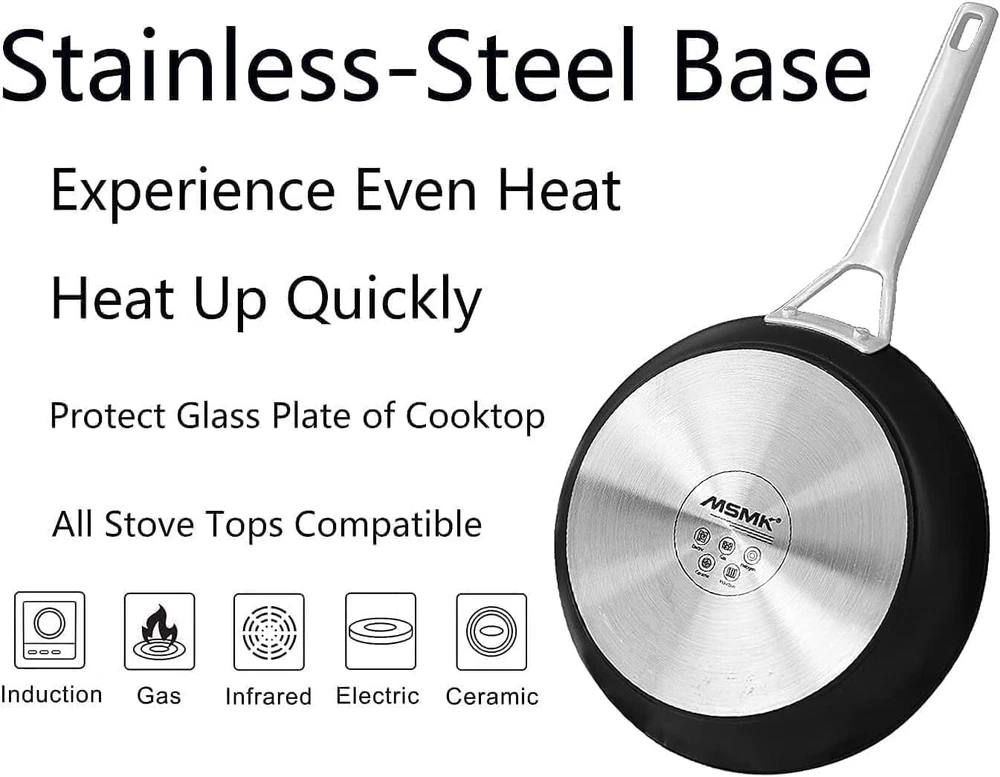 Looking to upgrade your kitchen cookware? Look no further than ! Our extensive selection of high-quality cookware is designed to elevate your cooking experience and help you create delicious meals with ease. From non-stick frying pans to durable pots, we have everything you need to make your kitchen the envy of all your friends and family. cookware is made from the finest materials and is designed to withstand the rigors of daily use, ensuring that your investment will last for years to come. Whether you're a seasoned chef or a novice cook, cookware is designed to make your life easier. With features like heat-resistant handles and easy-to-clean surfaces, you can spend less time worrying about your cookware and more time enjoying your culinary creations. So why wait? Upgrade your kitchen cookware today and start cooking like a with ! NONSTICK:Our ceramic non-stick enhanced diamond technology ensures healthy cooking of food,while eliminating the need for harmful chemicals found in traditional non-stick coatings. Say goodbye to smoke and fumes and enjoy a unique crispy tasting treat that,our small frying pan makes cooking a breeze. We tested it over 40,000 times and even burnt syrup won't stick to it! Heavy-gauge 4mm Stainless-steel bonded Anti-Warp bottom, induction Heat Transfer is much faster than with other nonstick pan, heats more evenly, smooth No Hole bottom is designed to avoid scratching up the Stove Top DURABLE & LONG-LASTING:Lasts for 20 years with 5 times of frying Steak and Bacon every day. Titanium non-stick coating from Germany, USA and GRE TUV approved, PFOA FREE, no nickel, lead and other heavy metals, safe for children EASY TO CLEAN DESIGN: Unlike other fry pan, gooey, messy and cheesy dishes like quesadillas and grilled cheese will slide right off your skillets non stick. You can easily wipe mess away when you’re done without worrying about burnt-on food. Solid Stay Cool handle is easier to clean than hollow handle LFETIME : DESIGN IN USA with imported components, we stand behind our large nonstick skillet with lid and offer a 100% policy for free if any issues arise due to the product's manufacturing or material defects. You can trust that each item has been carefully crafted to meet our high standards and will provide long-lasting value OVEN SAFE TO 700℉: With our large non stick frying pans, you can seamlessly transition your sautéed dishes straight into the oven for final changes, without sacrificing taste or quality. Our non-stick coating adds ease, efficiency, and peace of mind to your cooking experience IDEAL GIFT: non-stick cookware! Easy-to-use. Perfect for anyone, from amateur cooks to seasoned chefs. Unwrap it and see pure excitement on their faces. A gift they'll rave about for years