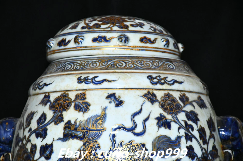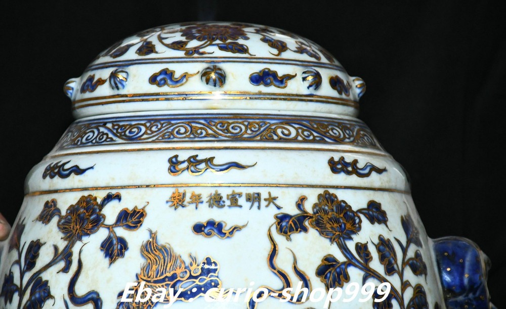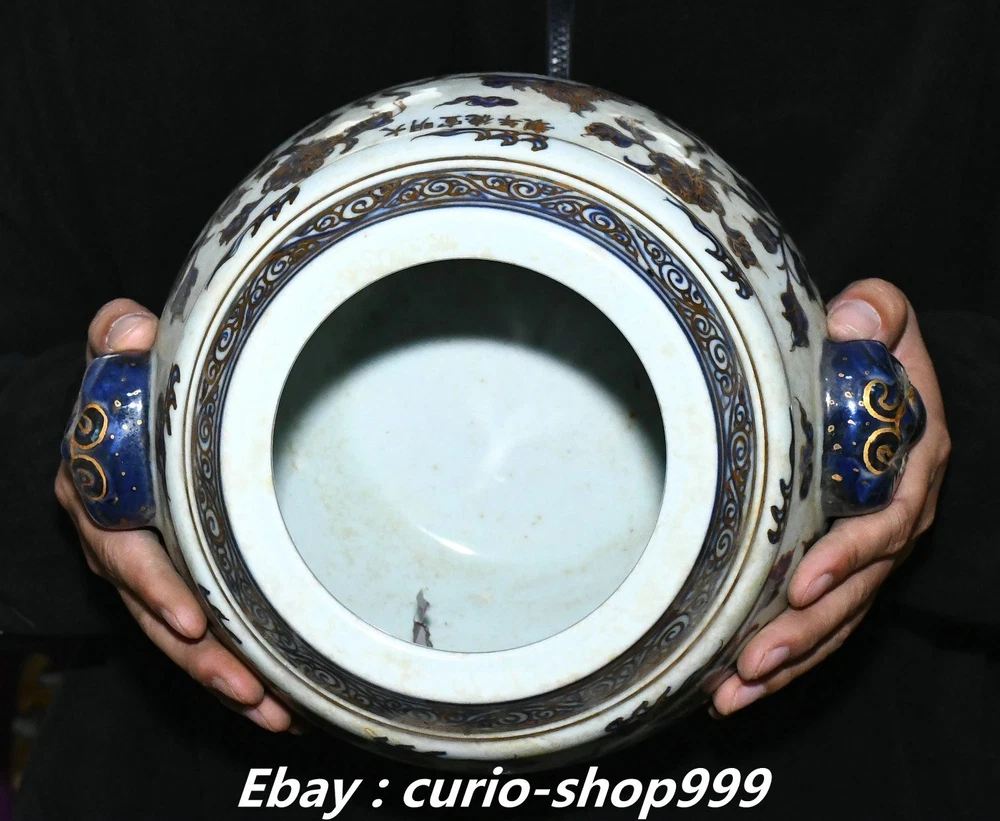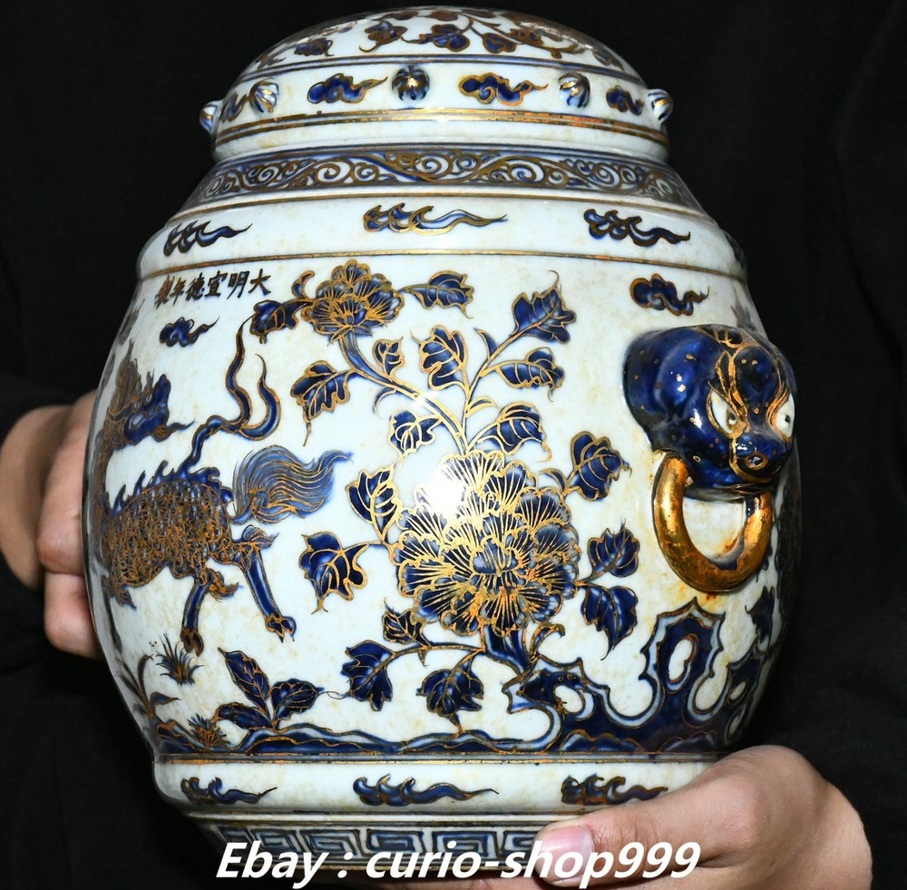 **** Welcome to our antique & Collectable Shop : Porcelain**** Description: Here is 11" Ming Xuande Marked Blue White Porcelain Gilt Kylin Qilin Beast Crock Pot Jar . It is in good condition, and was created by skilled craftsmen in traditional style with fine handcrafts.This is a great piece of valuablellection, a valuable personal alter or a very good present. the handwork is very fine with incredible detailling. Don't miss out this chance to get it.Wish you good luck! Material : Blue White Porcelain Gilt Size: Heigh 11.4 Long 10.2 breadth 8.2 (inch) Condition Perfect Condition. Perfect, with no scratc hes, flaws or repairs. Weight: 7.6 KG----included the weight of packing materials Shipping cost to all over the world countries in Free Honored Customers: We are selling the collectibles products and crafts in Beijing ,China since 1993 and collected them all over the world all the time . In our shop the bronze sculpture, animal, vase, urn, flowerpot,Incense Burner.Table chair sets. Militaria goods. buddha statues, Bodhisattva Statues, Buddhist Ritual Items etc is our speciality .Many of the items we sell come from our own personal collection and have been in our family for a very long time .My great-grandfather was the first in this family to start collecting art & antiques when he still lived in San Xi and Tibet around 1922 ,some of the paintings he once collected can now be seen in museums around the globe.We won't make money from t he shipping cost, if you dislike the item when you receive it,we can refund all of your money to you within thirty days. Please confidence for bidding . We recommend the combine shipping and offer you an big price discount if you order more items together ! 2025.10.17 四 号