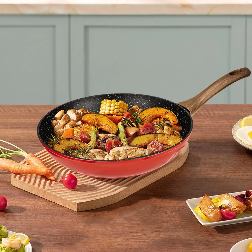 【11 inch Granite Non Stick Coating Frying Pan Skillet】What Is A Good nonstick Pan? Non-stick performance is the key. Compared to other ordinary non-stick pans, 's nonstick set adds 4 layers of non-stick coating, which means that the frying pans can better demonstrate long-lasting non-stick. Less oil or butter for cooking will release the food easily. Ideal for every cooking master. 【4 Layers of Non-stick Coating & Heats Quickly & Evenly】's nonstick set adds 4 layers of non-stick Granite coating, which can Heats Quickly and Evenly with precise temperature control and not hot spot. The Granite frying pan is designed for professional multiple cooking use, pans for cooking, egg pan, cooking pan, omelet pan, sauté pan, egg skillet, induction pan. 【Safety Healthy Cooking】This non-stick pan is pans for cooking with less oil needed and less smoke released. This nonstick frying pan is ideal for healthy cooking, less oil use for healthy diet. Choose Easy chef always Frying Pan for greener and healthier cooking. Our Chef Pan is 100% Free of PFOS, PFOA, PFAS. 【Easy To Clean】With the non-stick Granite coating, there are no more sticky or difficult-to-clean problems. Only by using a soft sponge or dishcloth, you can clear oil stains easily. Please do not use a sharp or pointy brush, which would do harm to the non-stick layer. Besides its wonderful nonstick and quick clean performance, this nonstick cooking pan is dishwasher safe. 【100% Satisfactory 】is happy to listen to what our customers really think, and our policy is to make our customers 100% satisfied with our goods and services. Please feel free to contact us if you have any questions.