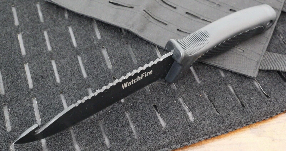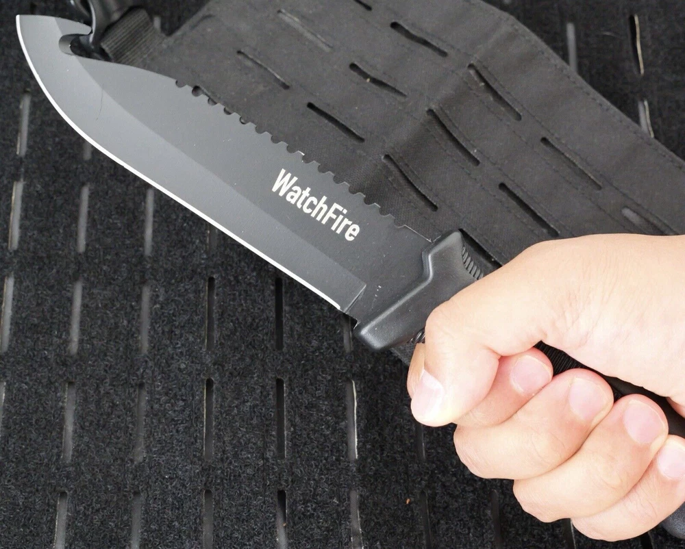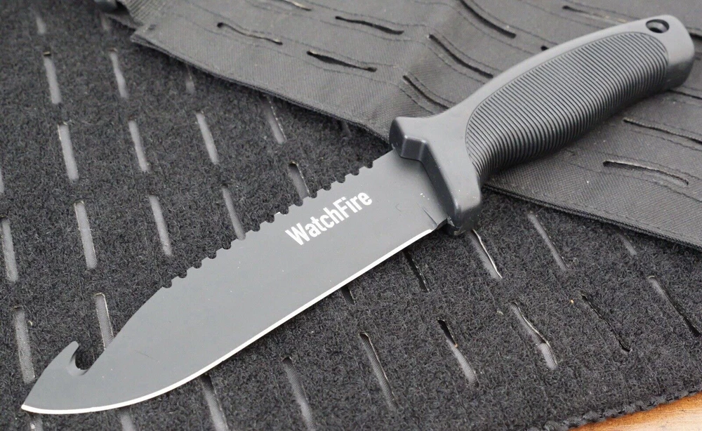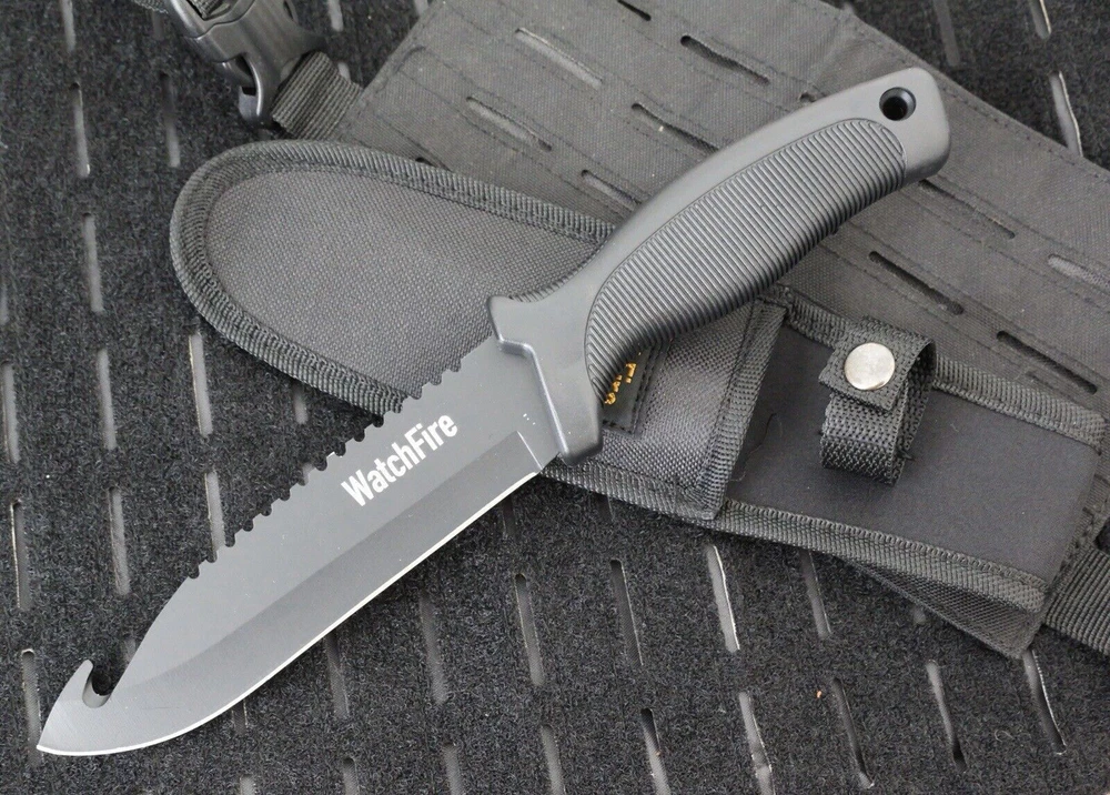 This 11" Ultimate Survival Knife by Watchfire is the perfect tool for any outdoor enthusiast. The razor-sharp 440 stainless steel blade measures 6 inches and features a combination blade edge with a drop point hook design. The black-colored blade is made of high-quality steel, making it indestructible. The knife also features a full tang and a rubber handle for a comfortable grip. It comes with a nylon sheath for easy carrying and storage. Other notable features include a lanyard hole and a sawback for extra versatility. This original and factory manufactured knife is a great addition to any collection or for use in bushcraft and survival situations. Item ships express from USA