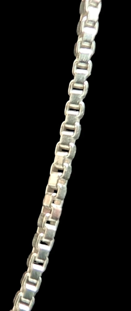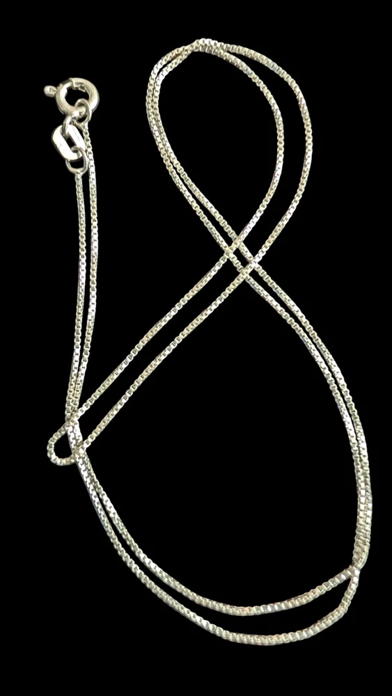This 18" Box Chain Necklace is crafted from 925 Sterling Silver in Italy, featuring a Lobster clasp and soldered joints for durability. The chain has a sleek design and a thickness of 1.1mm, making it an ideal chain for a new pendant or as a replacement for an old favorite. The piece is signed with the maker's mark and offers a classic style suitable for everyday wear. This chain is brand new and ships in an anti tarnish bag for its protection It will ship same or next day depending on time of purchase. Thank you so much for your interest in this listing. If you have any questions please don't hesitate to ask