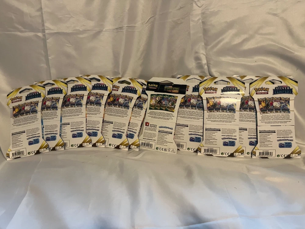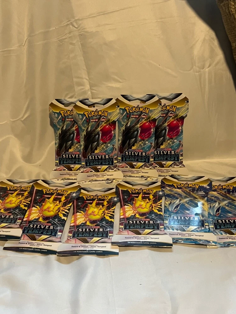 Comes with 10 Silver Tempest sleeved booster packs. These are known as “cracked packs” because the pull rates are so good. Also 1 Evolving Skies pack for a shot at the “Moonbreon”